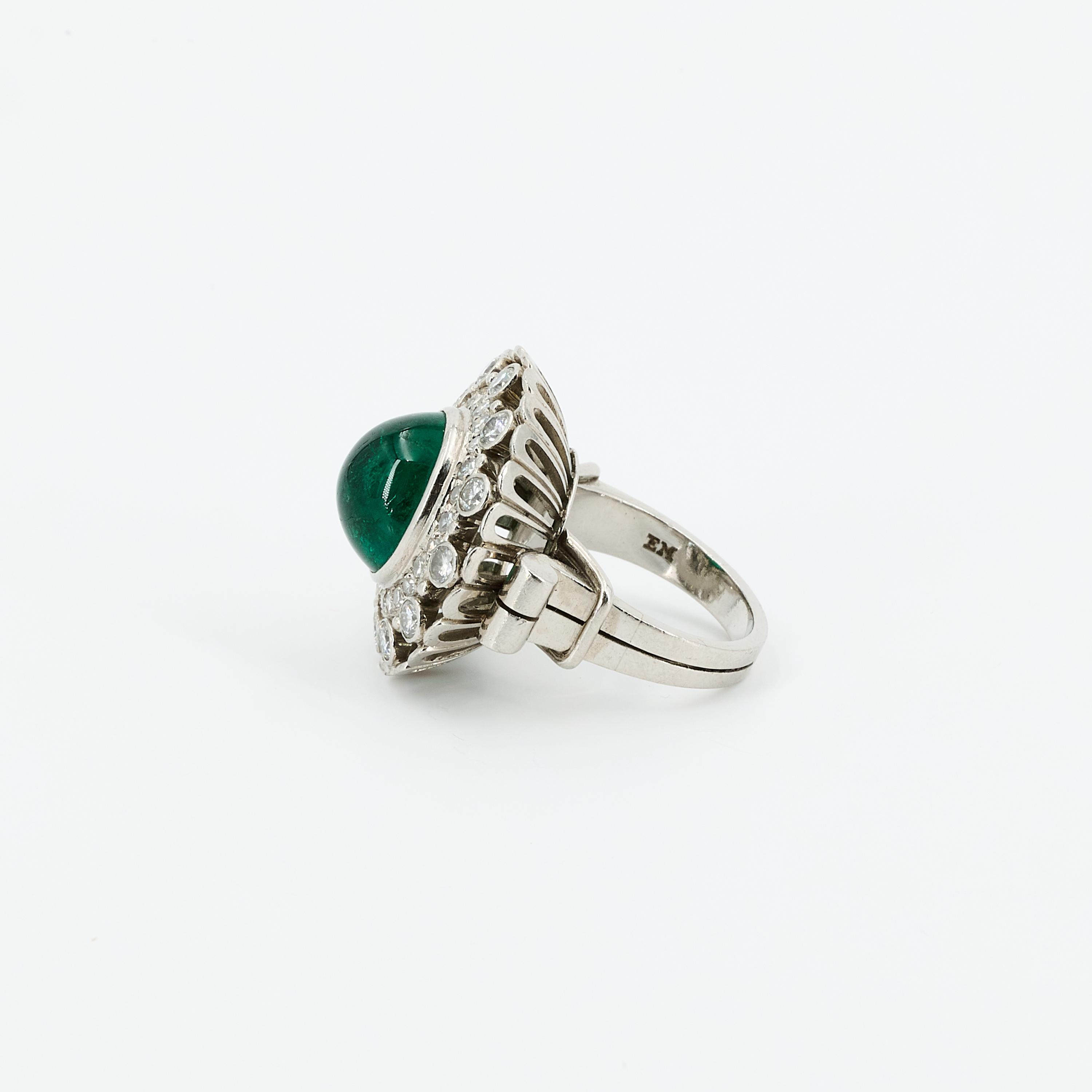 Edelsteine: 1 runder Smaragd im Cabochon-Schliff ca. 5,0 ct., schönes intensives Grün.