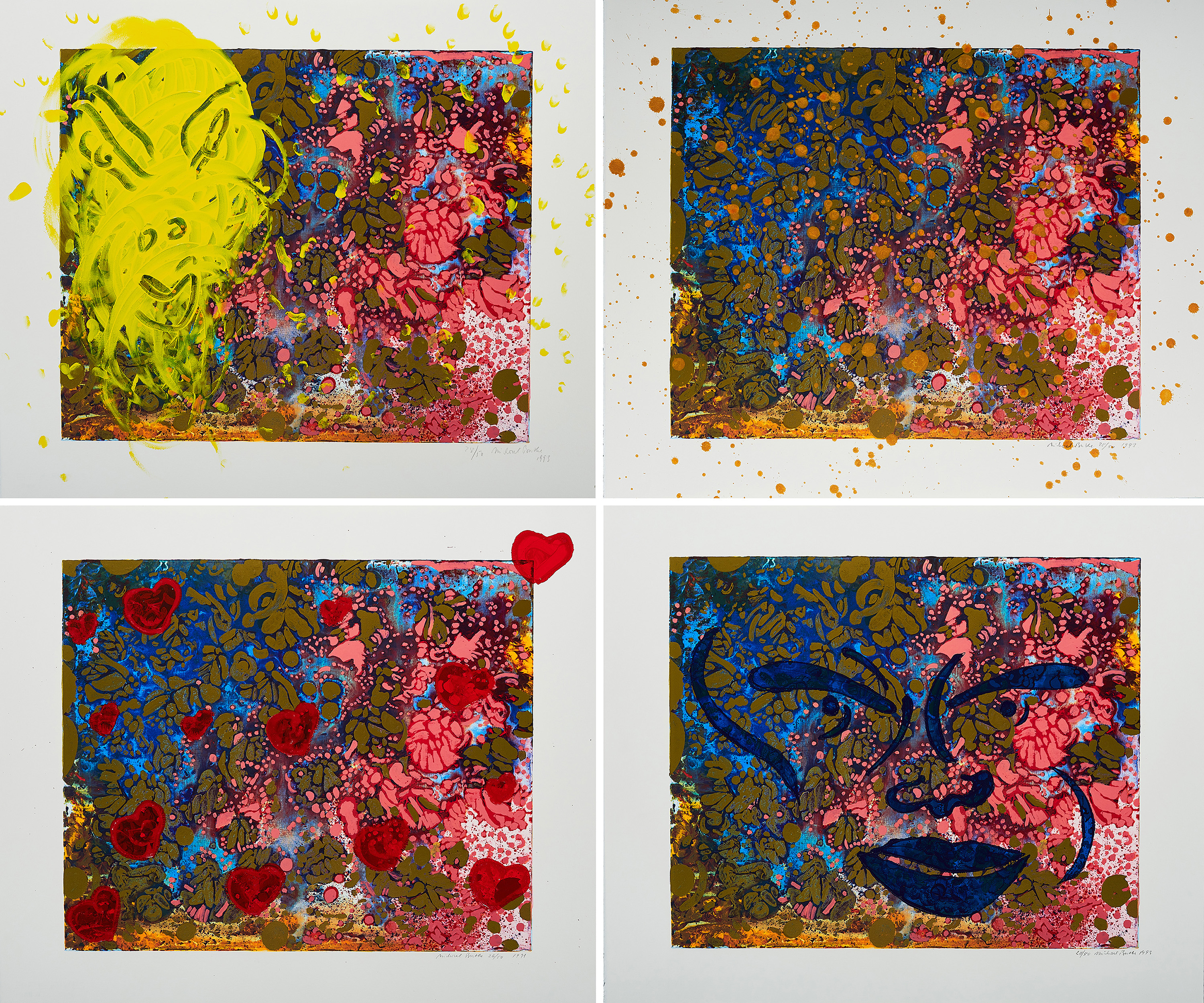 Technik: Serie von 4 handkolorierten Farbserigrafien auf BFK RIVES FRANCE (Wasserzeichen).