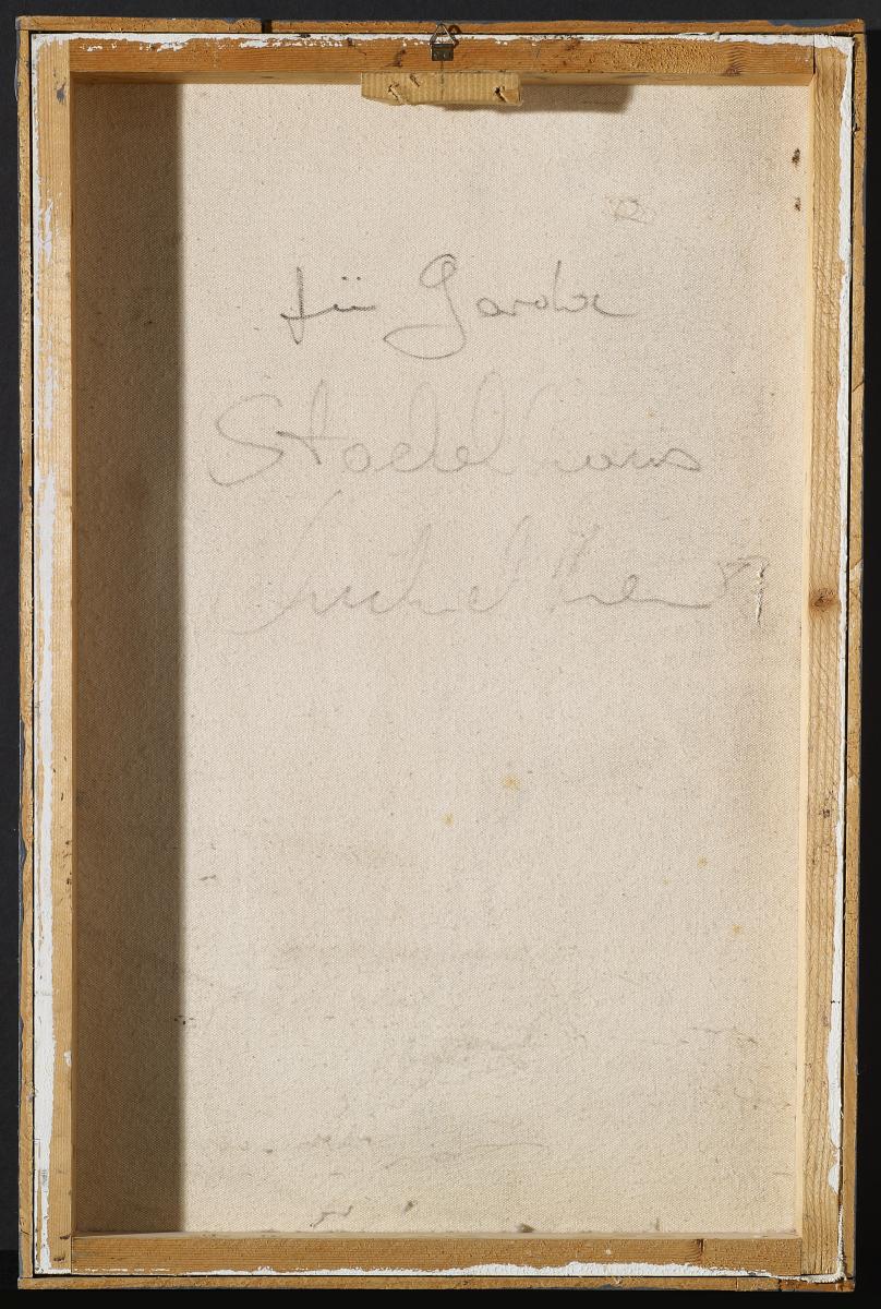 Ohne Titel. 1983. Mischtechnik auf Leinwand. 62 x 41cm. Signiert und datiert verso: Michael Irmer 83. Darüber Widmung. Atelierleiste.