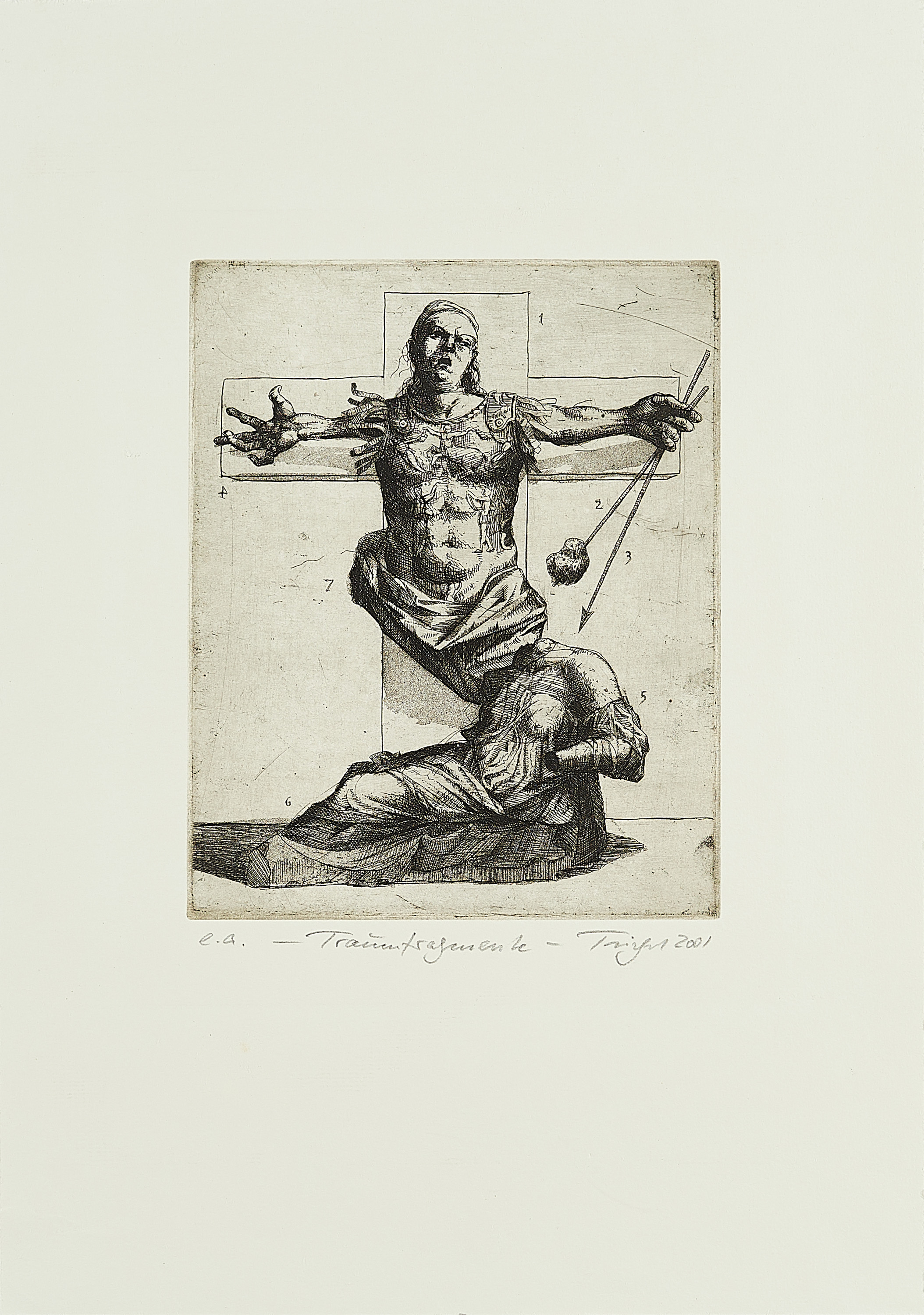 Technik: Strichätzung und Aquatintaradierung auf Büttenpapier.