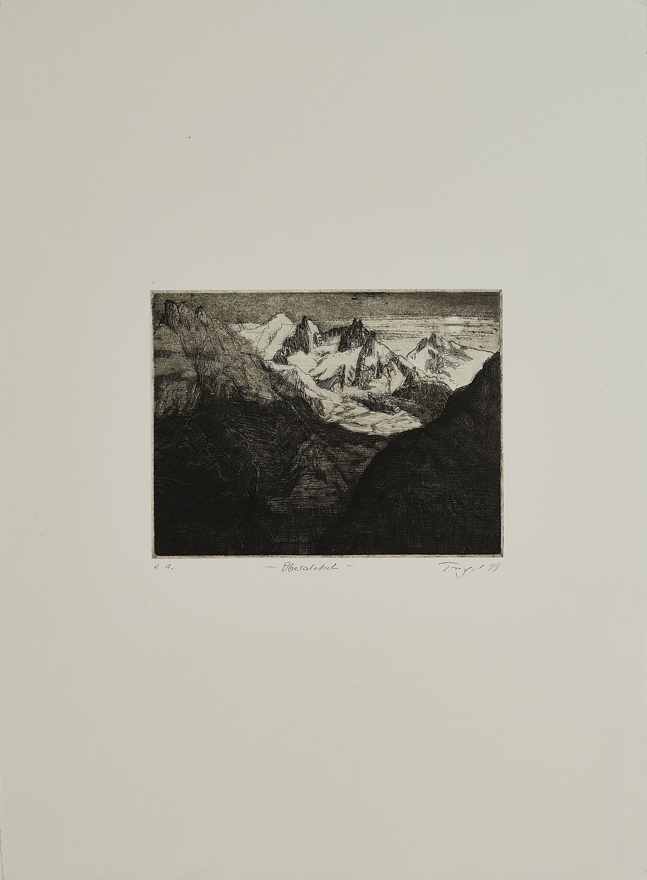Technik: Strichätzung, Reservage und Aquatinta auf Hahnemühle (Wasserzeichen).