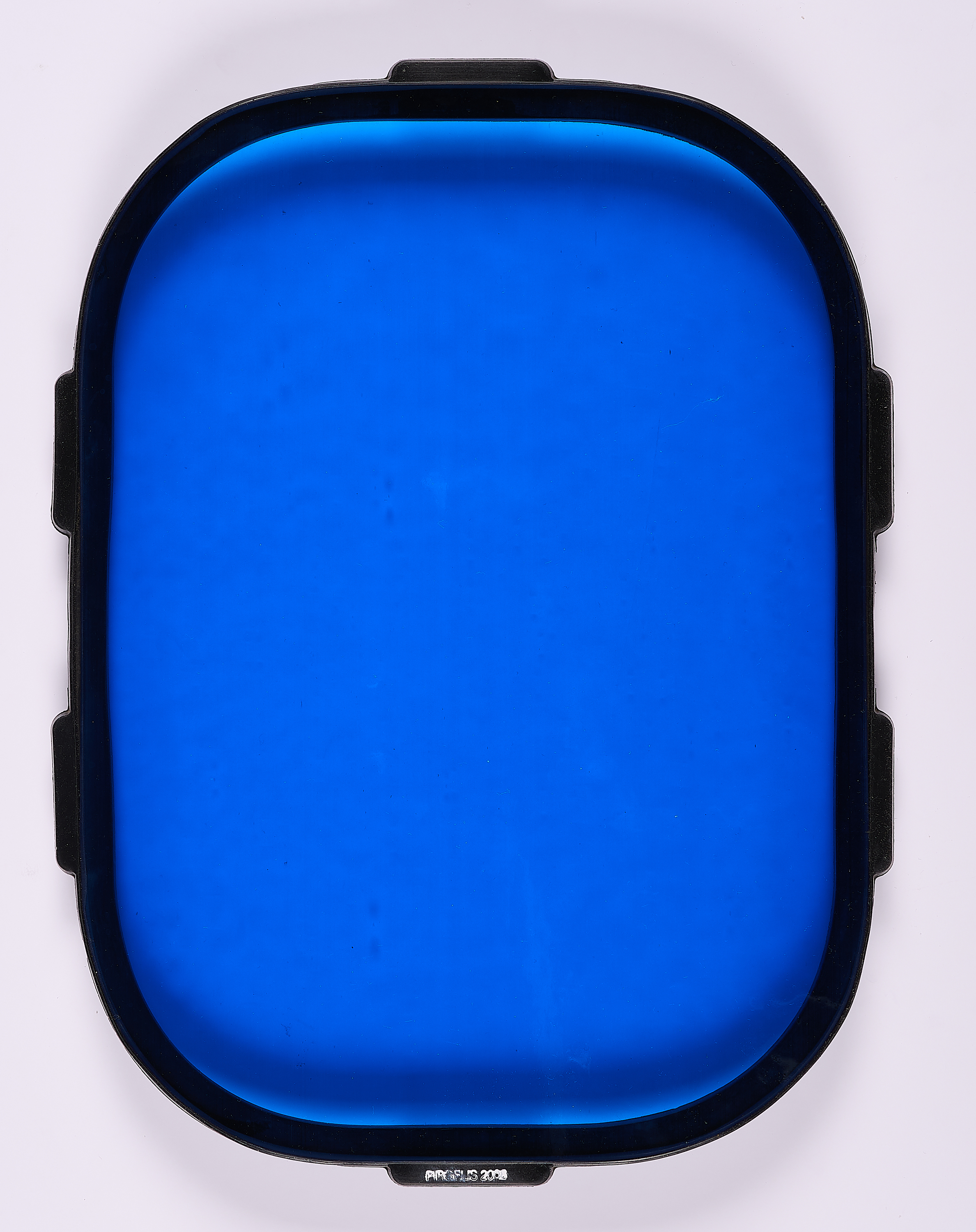 Technik: Blaues Glas in Flugzeugfensterrahmen.