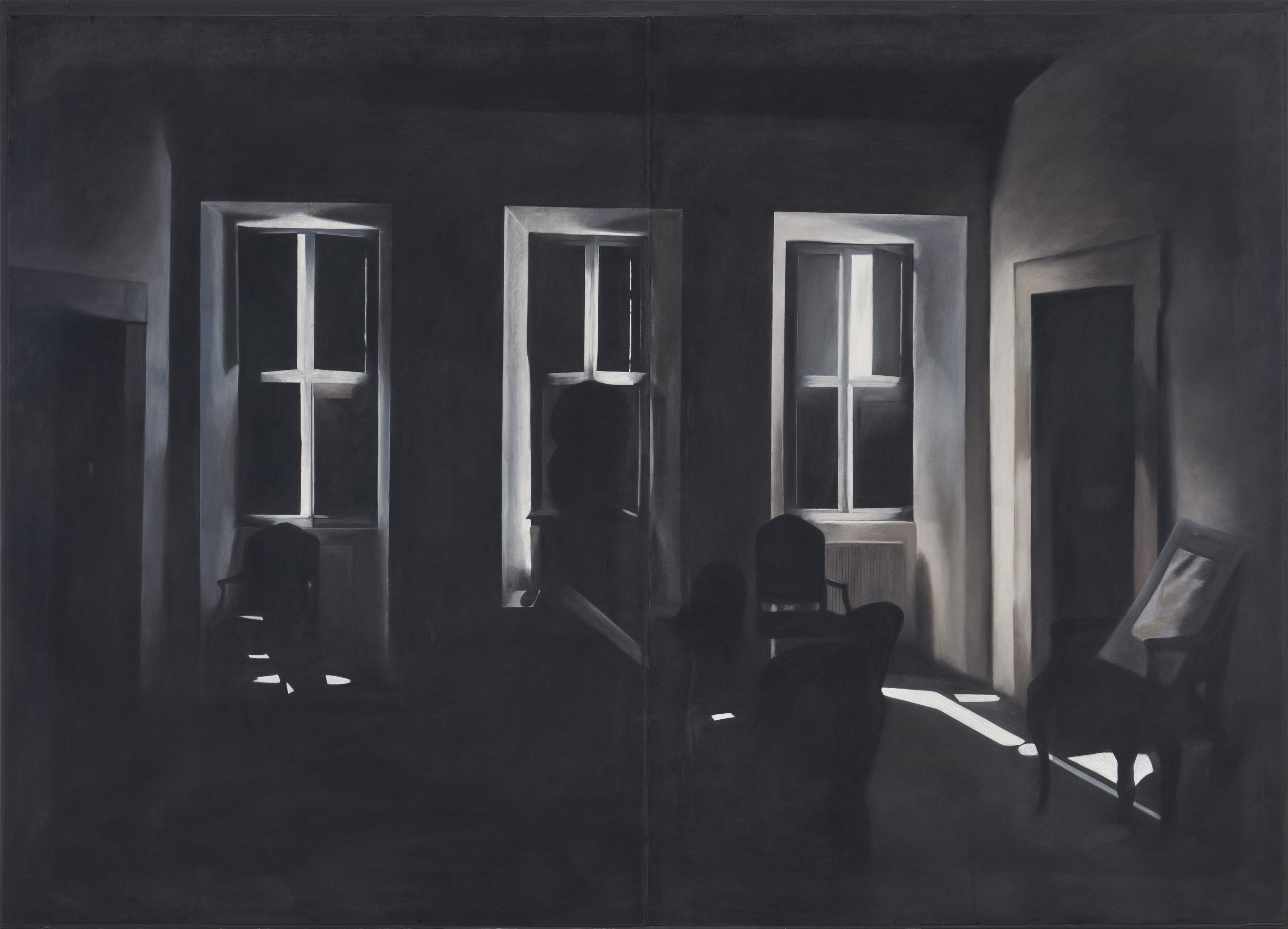 Technik: Kohle und Pastellkreide auf 2 Bögen Papier.
