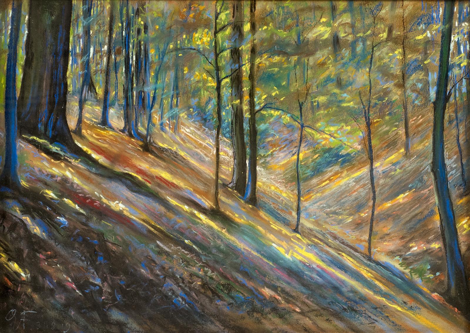 Waldstück. Unten links: G.F. 31.8.1926. Pastell auf Papier. Ca. 41,5 x 59cm. Rahmen.
