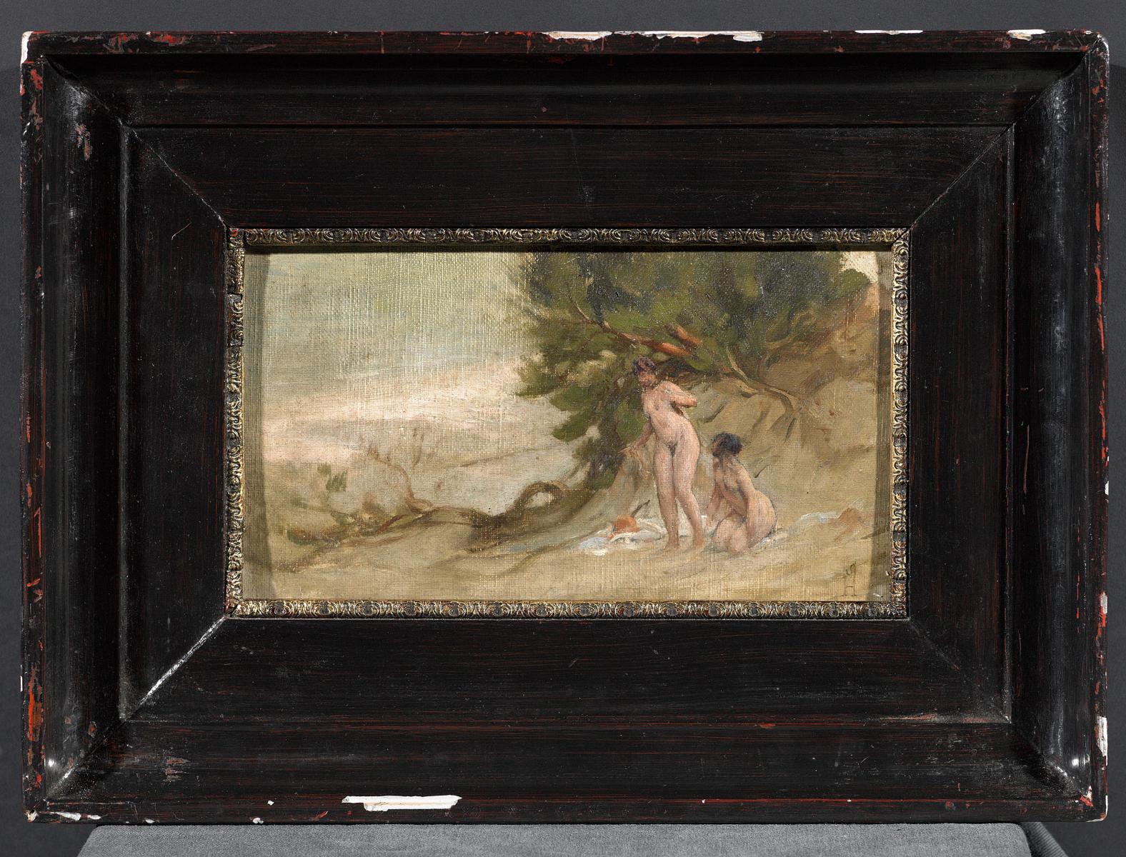 Monogrammist SH2 Ölstudien. Badende am Strand. Monogrammiert. unten rechts auf SH (lig). Öl. Leinwand x Auf Holz gezogencm. 23,5 Rahmen: