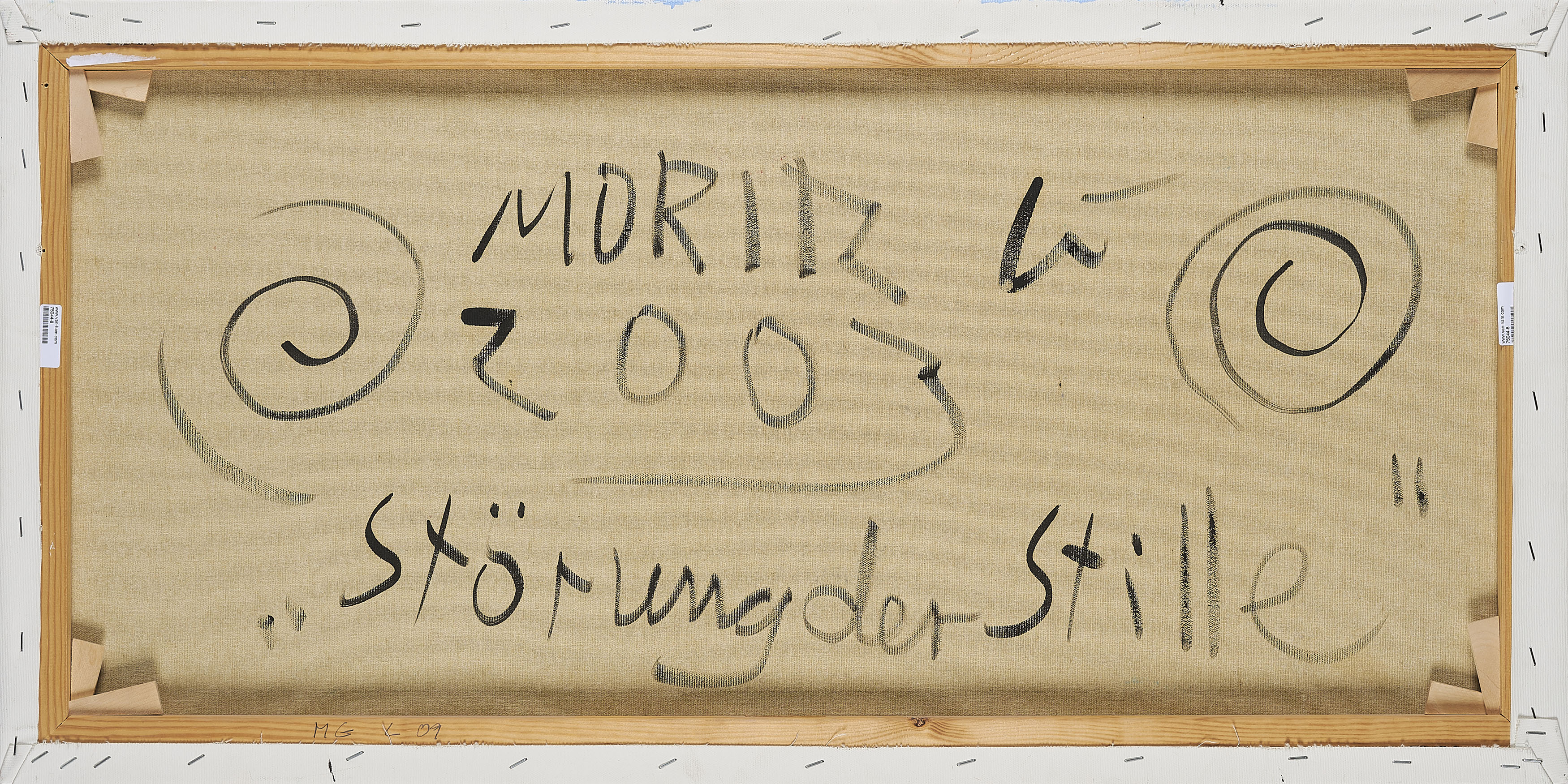Bezeichnung: Signiert und datiert unten links: MORITZ 2003. Sowie signiert, datiert und betitelt verso: MORITZ 2003 "Störung der Stille".