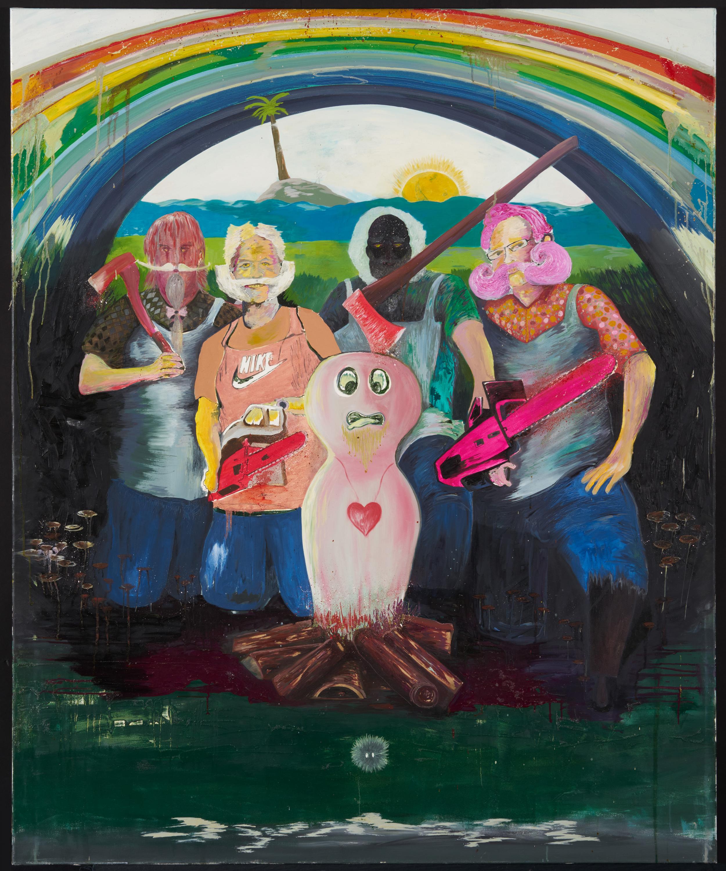 Bezeichnung: Signiert, datiert und betitelt verso auf der Leinwand unten rechts: Moritz Schleime 2005 "Heinz Ketschup An der Kettensäge".
