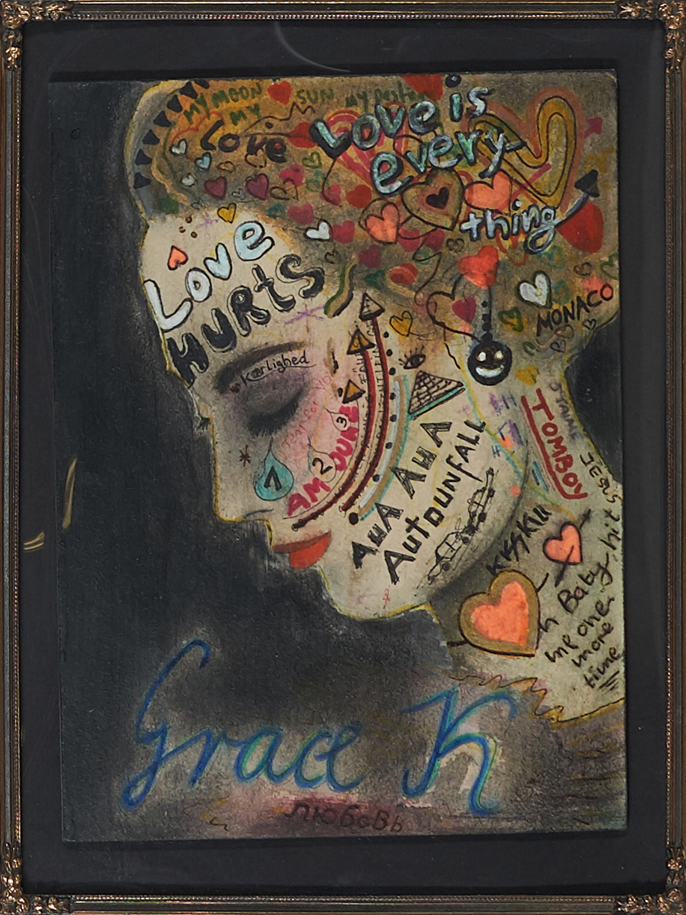 Bezeichnung: Signiert, datiert, betitelt und bezeichnet verso: GRACE K Ibiza 2014 Moritz Schleime & Corinne von Lebusa. Sowie signiert, datiert, betitelt und bezeichnet verso auf einem Stück Kreppband: "GRACE" 2014 IBIZA Corinne von Lebusa + Moritz Schleime.