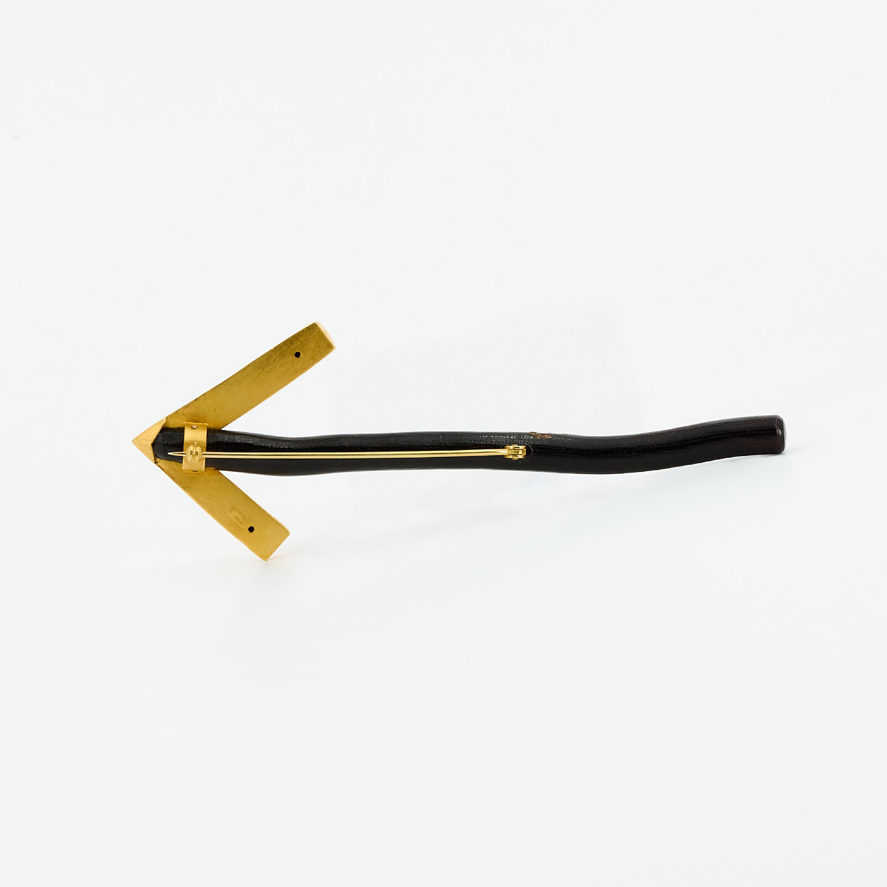Beschreibung: Signiert "N". Reduziert gestaltete Brosche in Form eines Pfeils mit gelbgoldener Spitze,