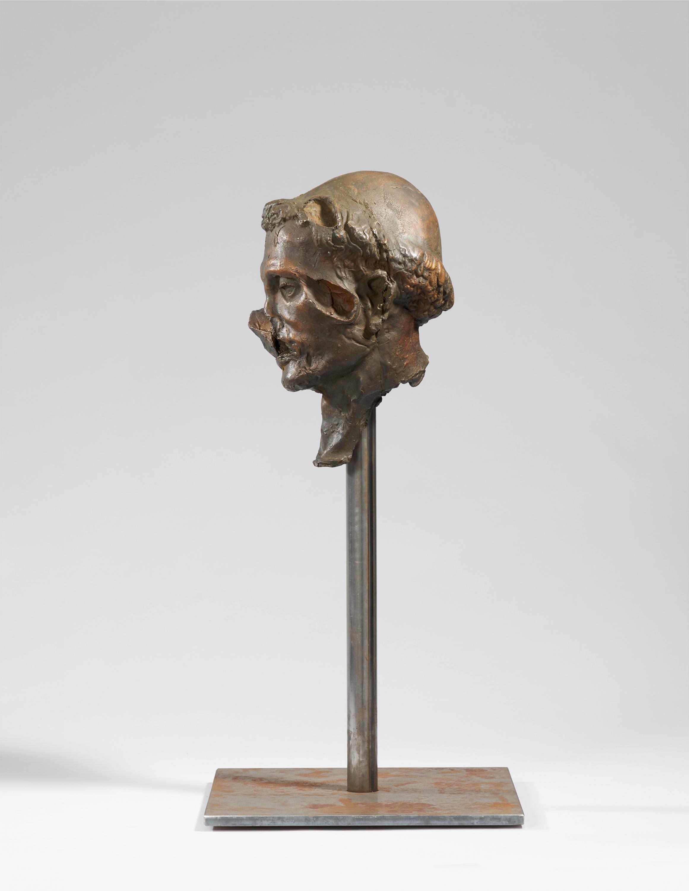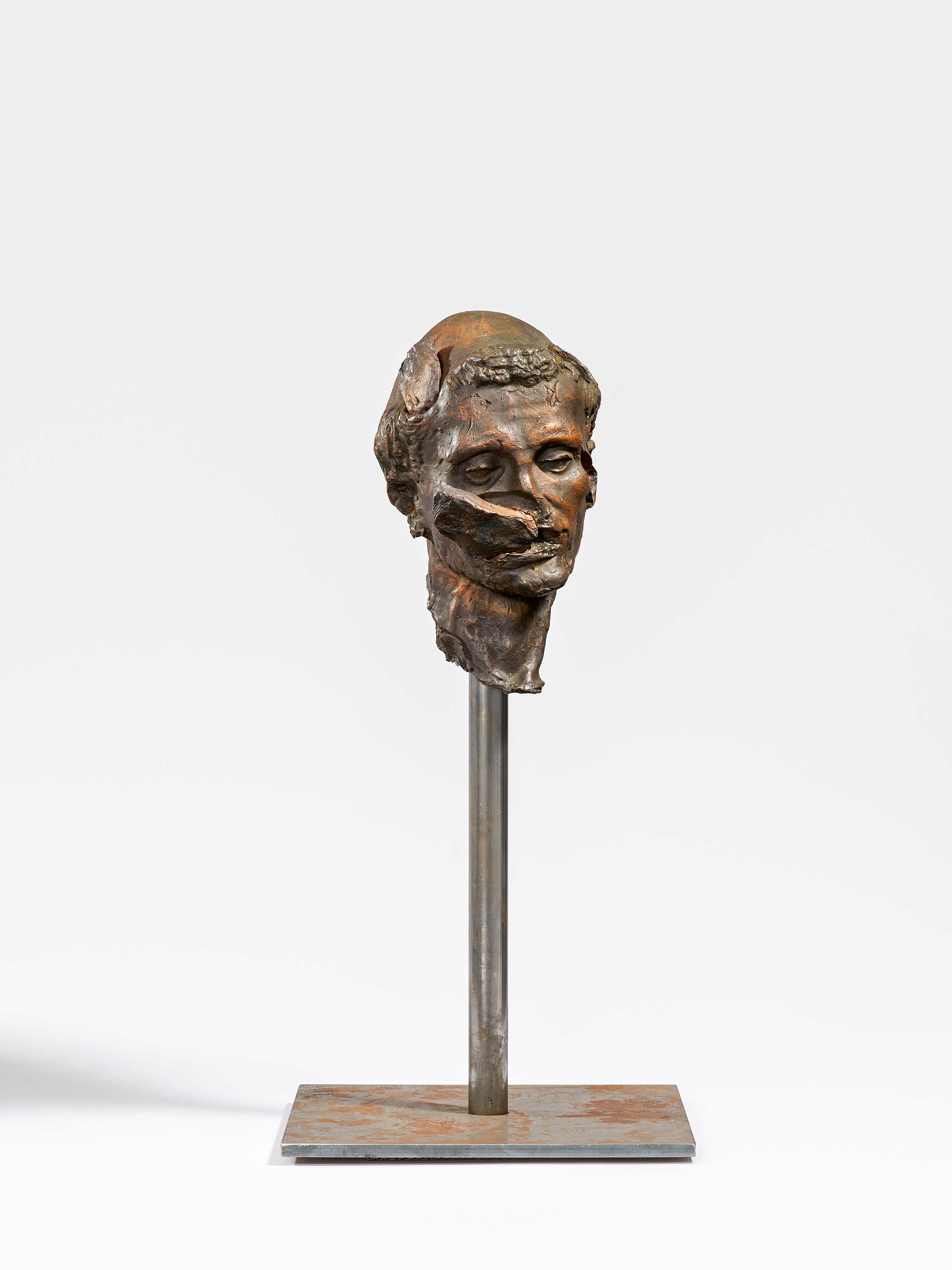 . Technik: Bronze, braun patiniert, auf Stahlstand (2-teilig).