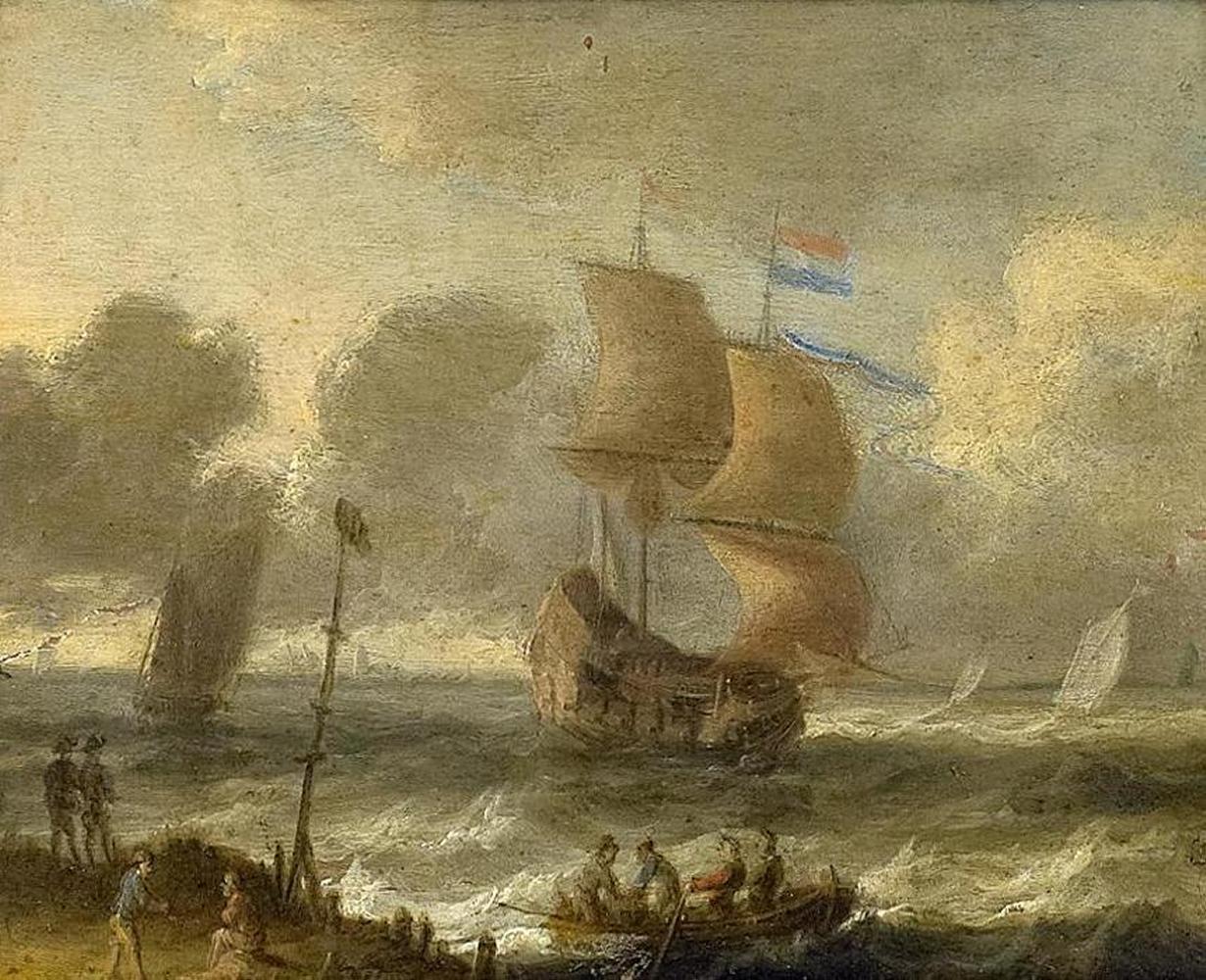 Marine. Öl auf Kupfer. 13 x 16cm. Rahmen.