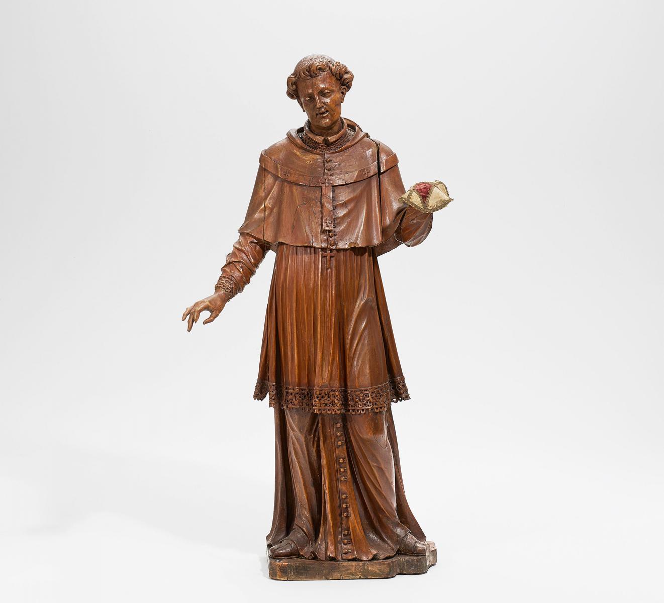 Weibliche Heilige auf geschnitztem Sockel. Höhe: 18cm.