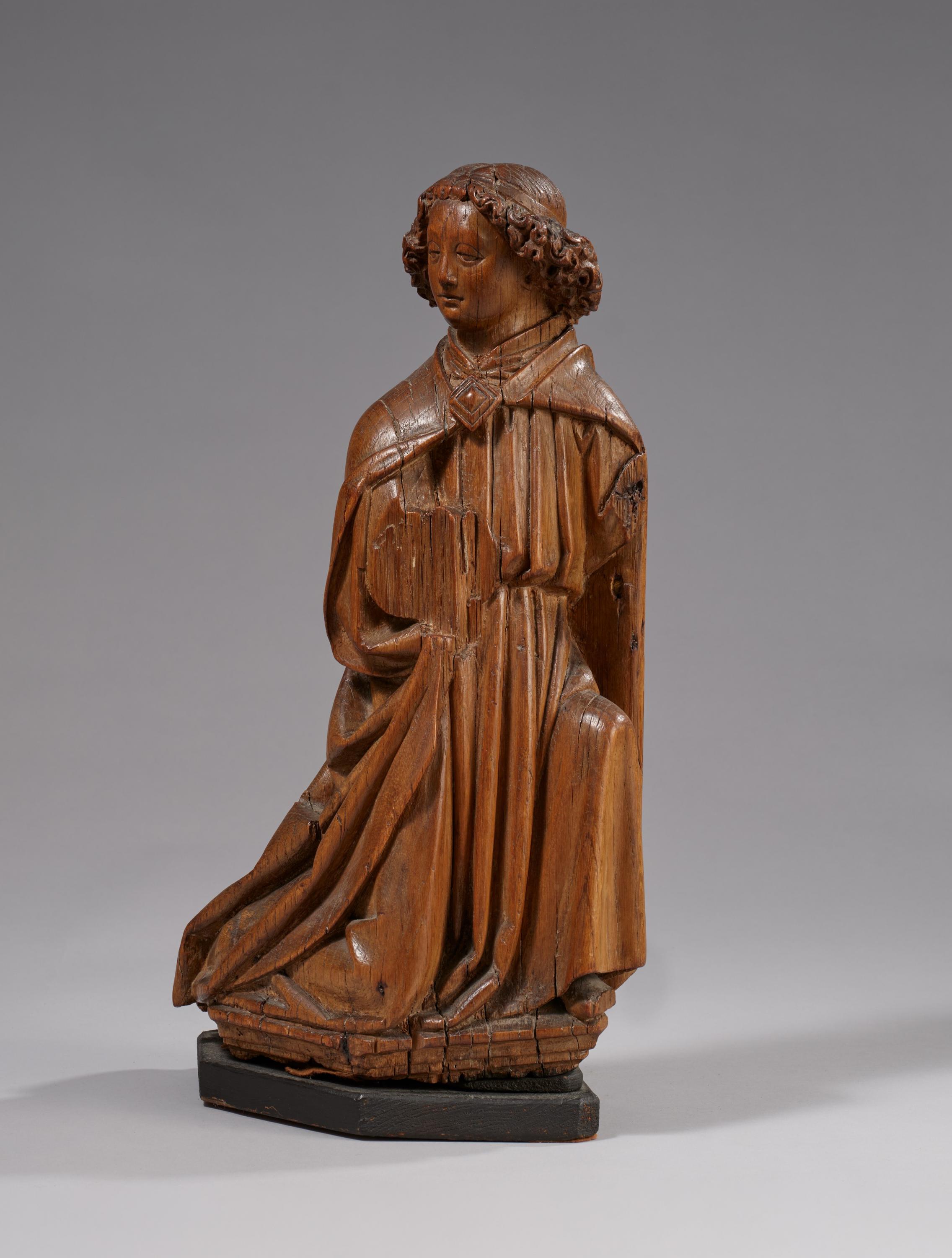 Technik: Eichenholz, ungefasst. Arme und Flügel verloren.