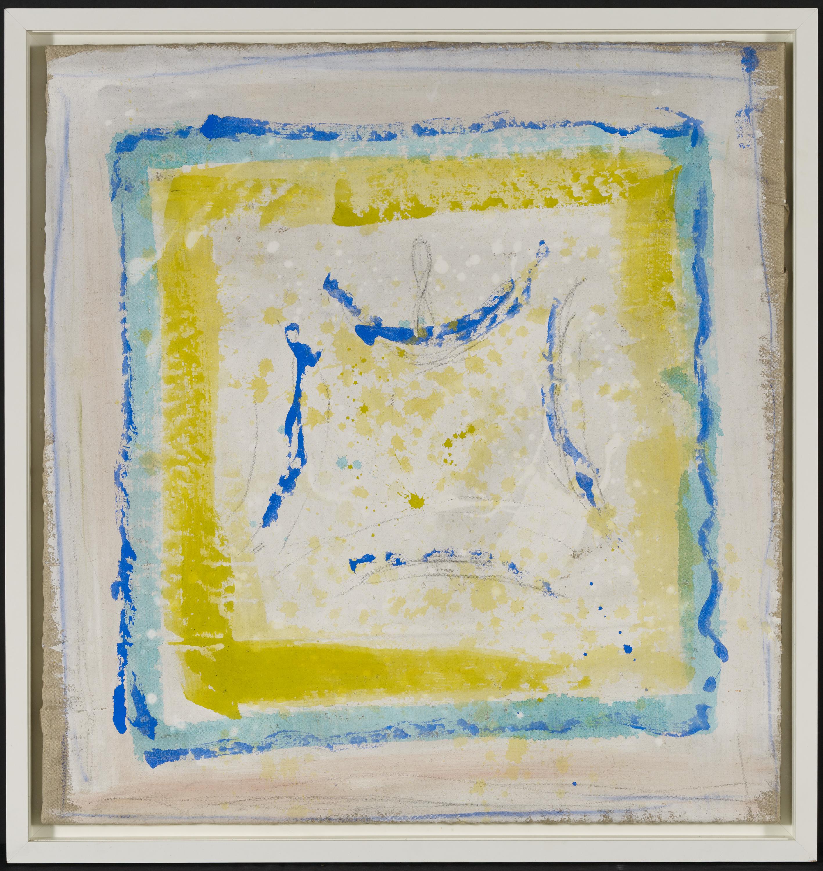 Technik: Wasserfarbe, Pastell und Bleistift auf Leinwand.