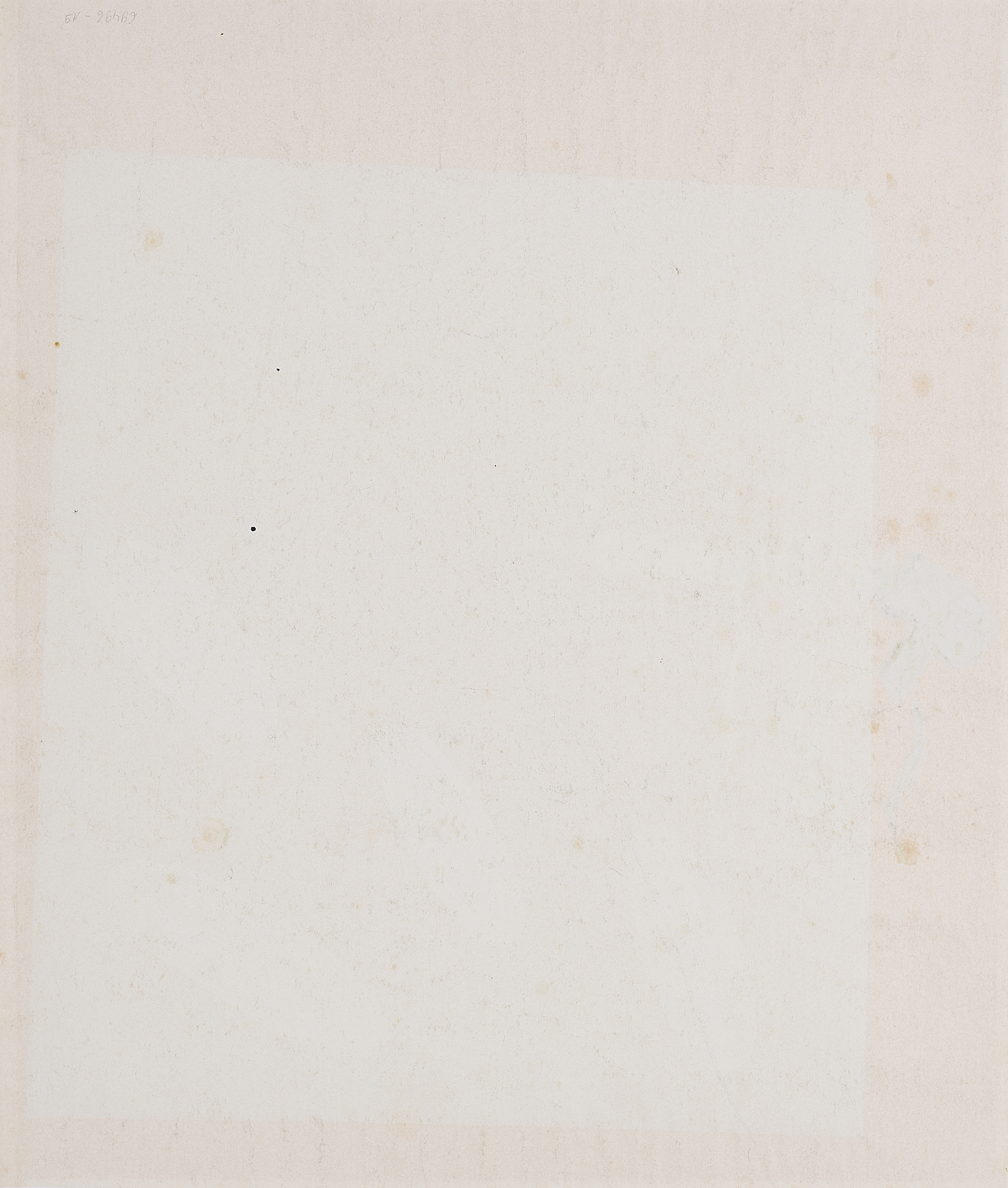 Blatt leicht gewellt. Leicht und unregelmäßig gebräunt. Leichte Verschmutzungen in den Randbereichen. Leichte Knick- bzw. Griffspuren.
