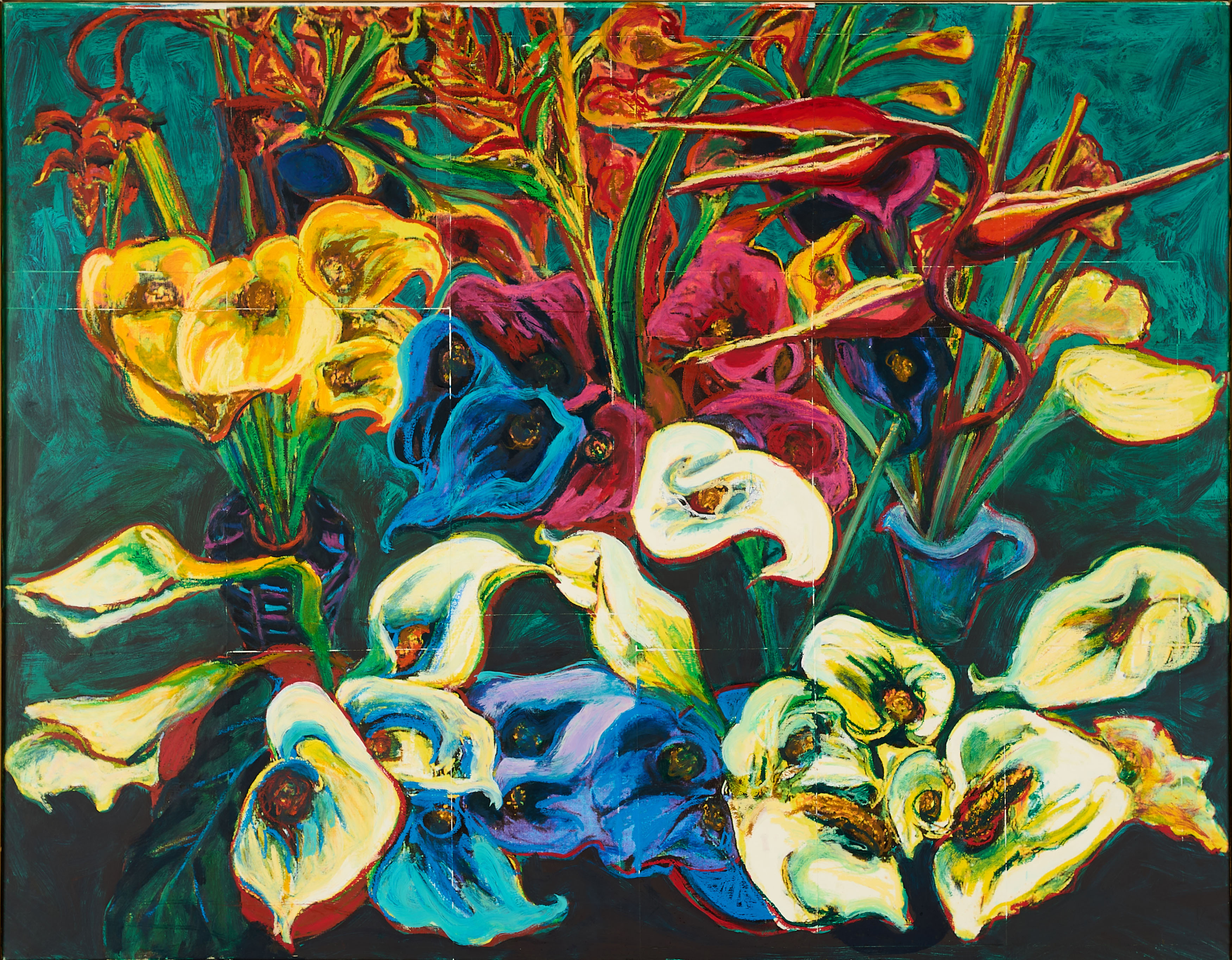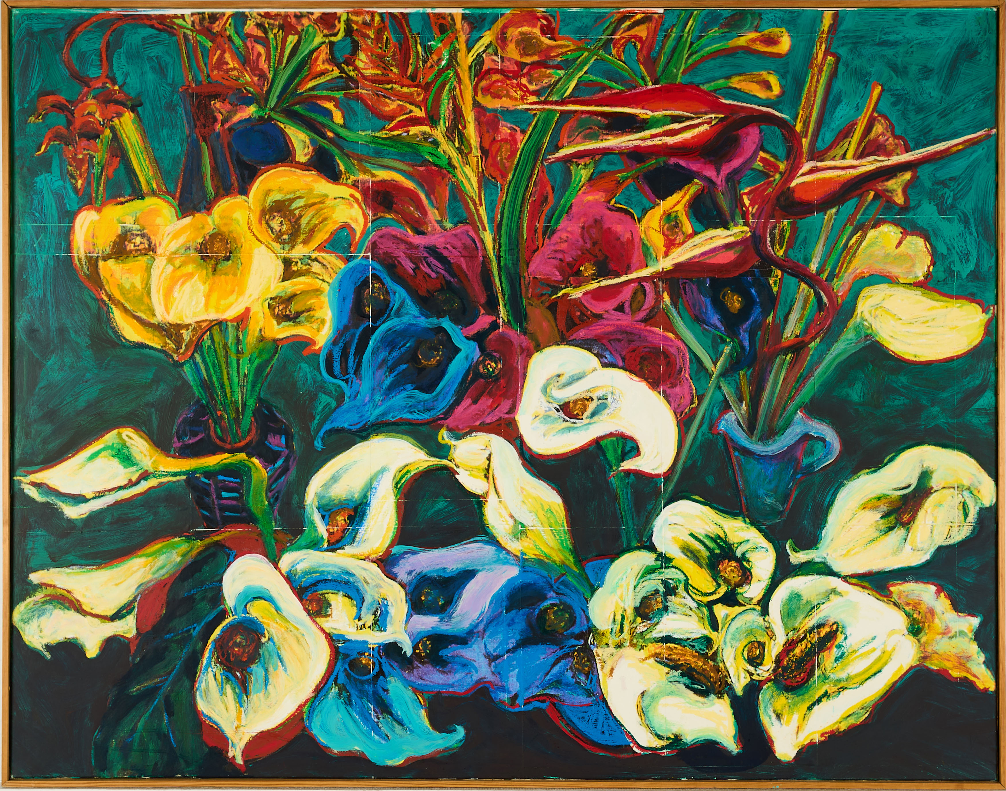 Technik: Öl über Druckgrafik auf mehreren Bögen Velin. Auf Leinwand.