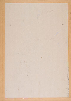Im ehemaligen Passepartoutausschnitt leicht gebräunt. Stockiger Geruch. Arbeitsspuren. Verso Reste alter Montierung (stehen recto minimal über) sowie Arbeitsspuren.