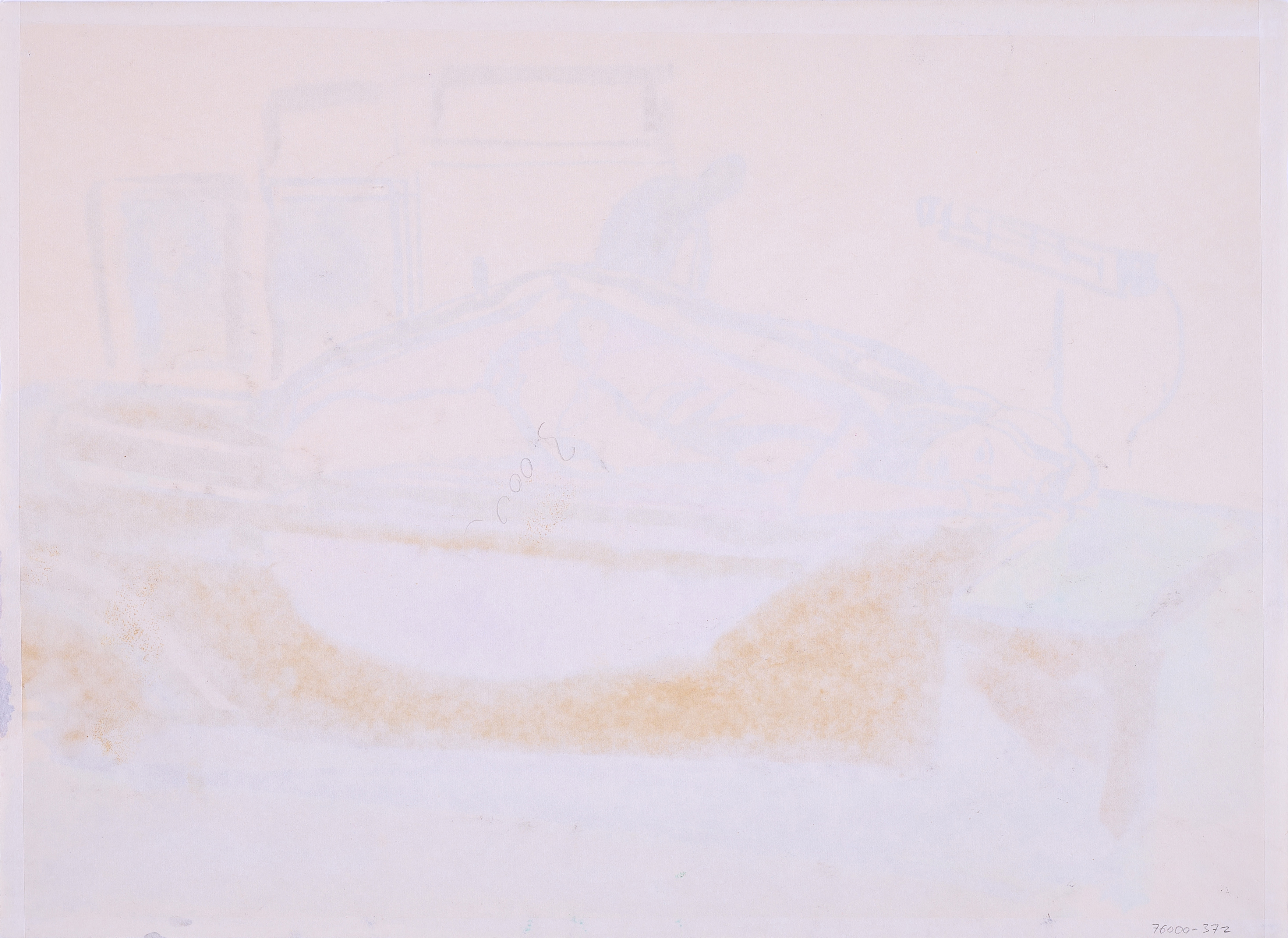 Blatt im ehemaligen Passepartoutausschnitt leicht gebräunt. Stecknadelkopfgroße Löcher in den Blattecken. Verso Reste alter Montierung. Ansonsten befindet sich das Werk in einem sehr guten Zustand.