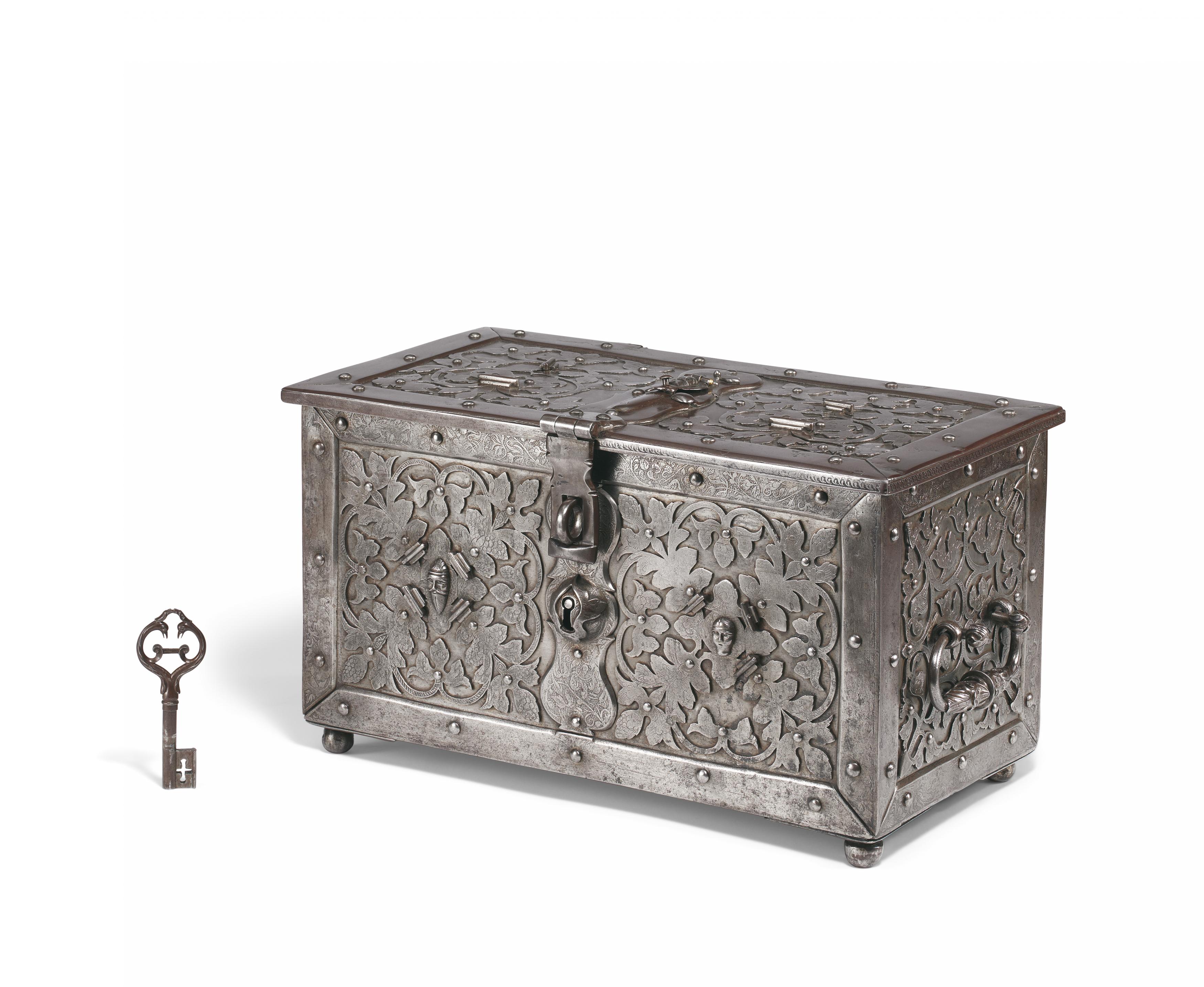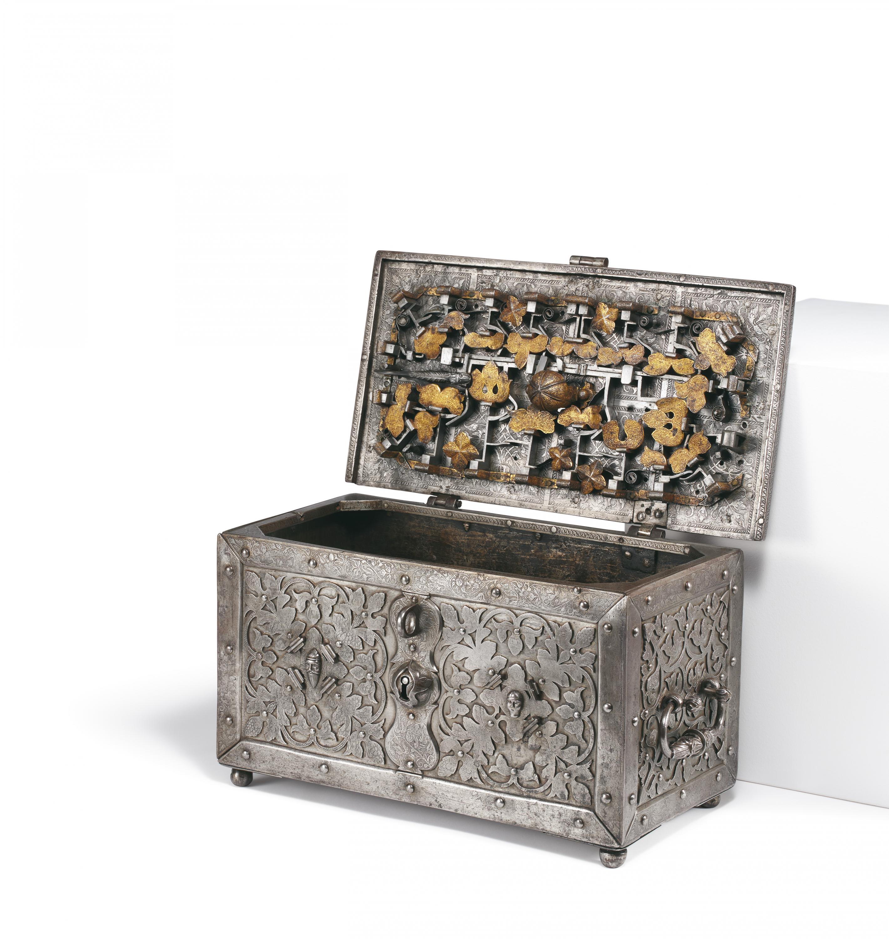 Eine vergleichbar fein geätzte Truhe in der Sammlung Charles Boucaud, Auktion Fraysse & Associés, 8.2.2011, Los 216.