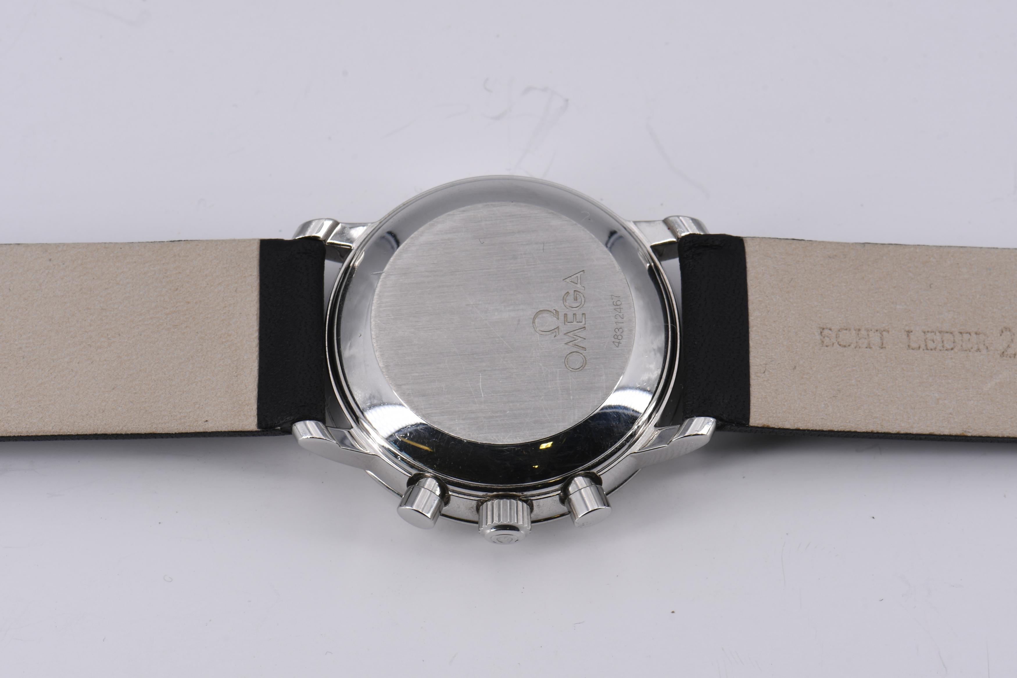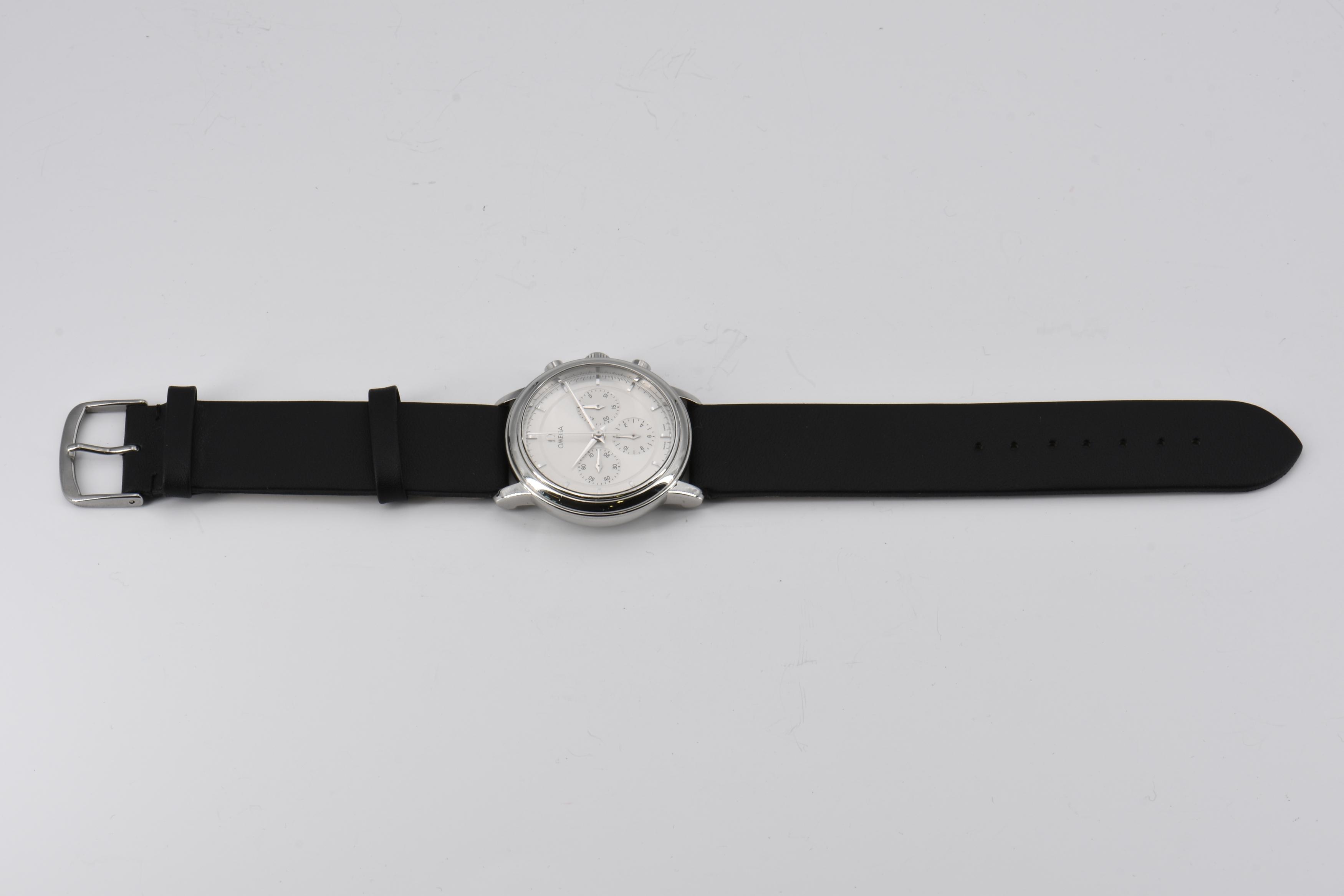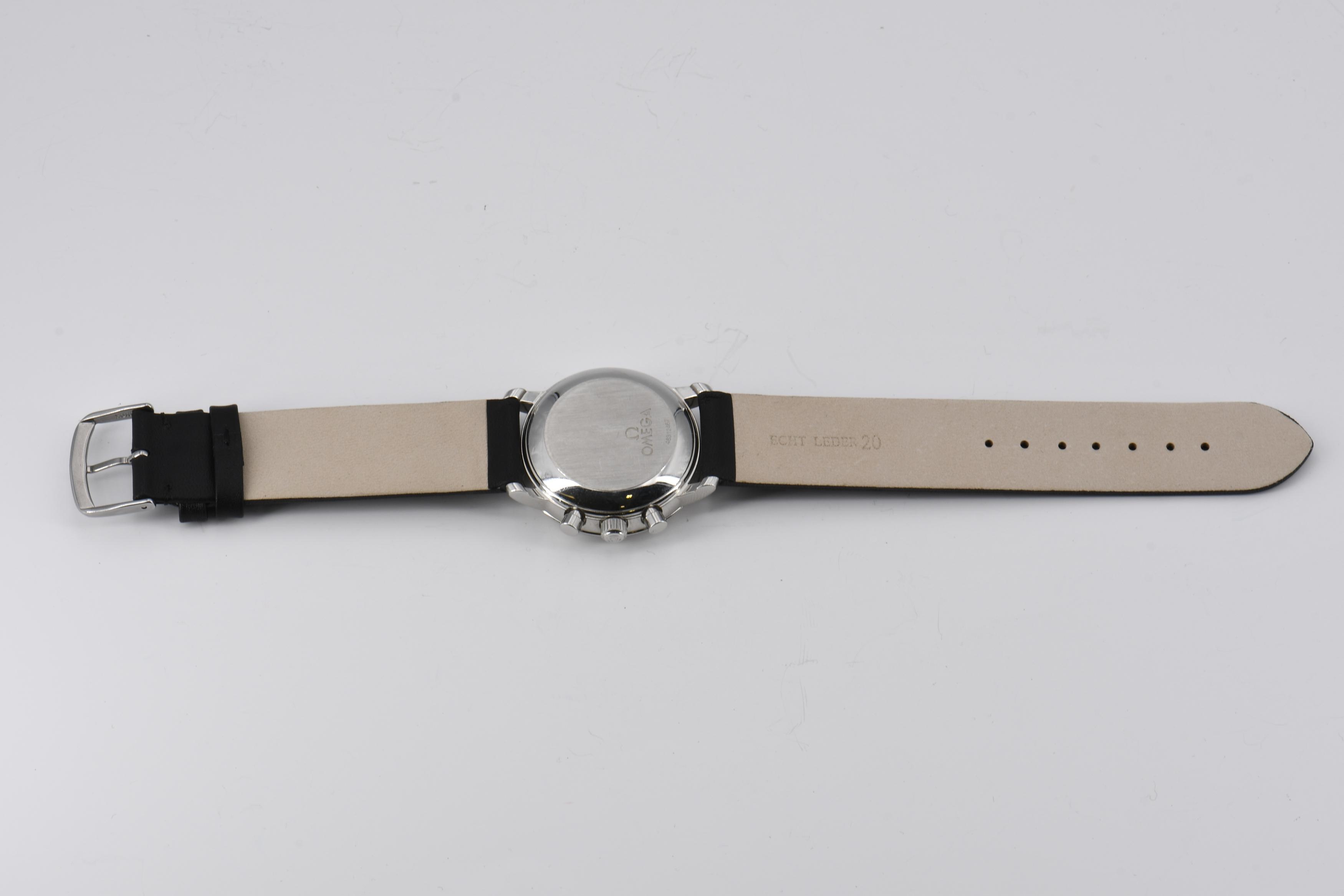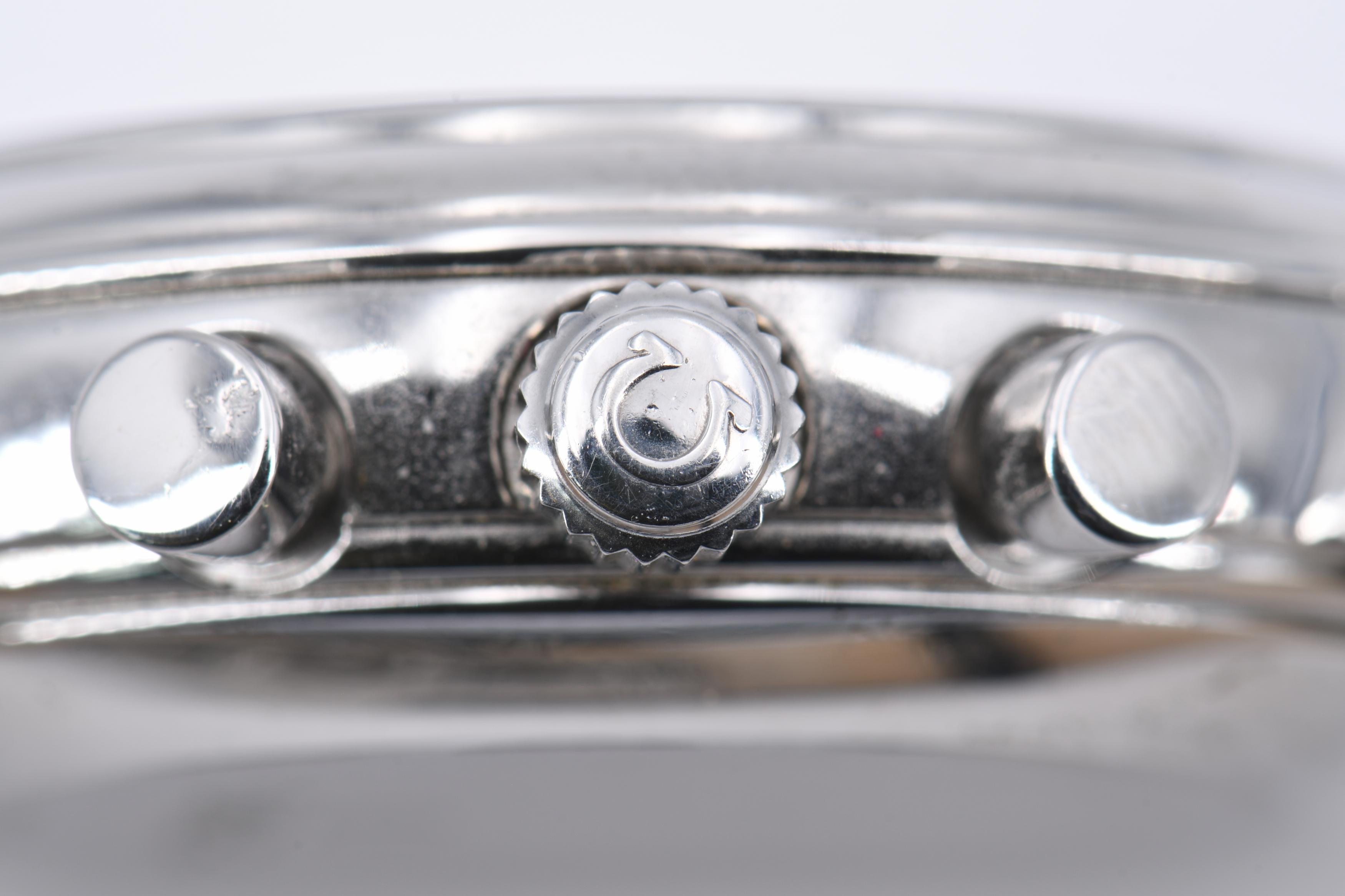 Gehäuse/Armband: Stahl, Lederarmband mit Dornschließe, Zffbl. weiß/silbern lackiert, Zeiger/Indizes silbern.