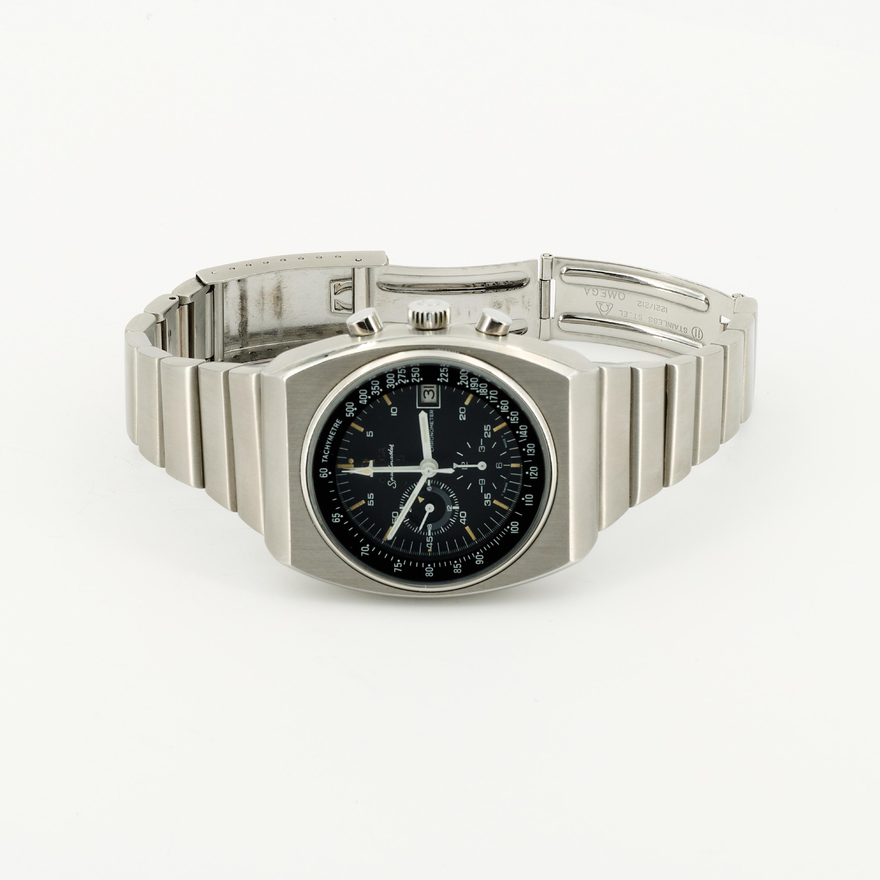 Gehäuse/Armband: Stahl, Gliederarmband mit Faltschließe, Zffbl. schwarz, Zeiger und Indizes weiß, Leuchtmasse.