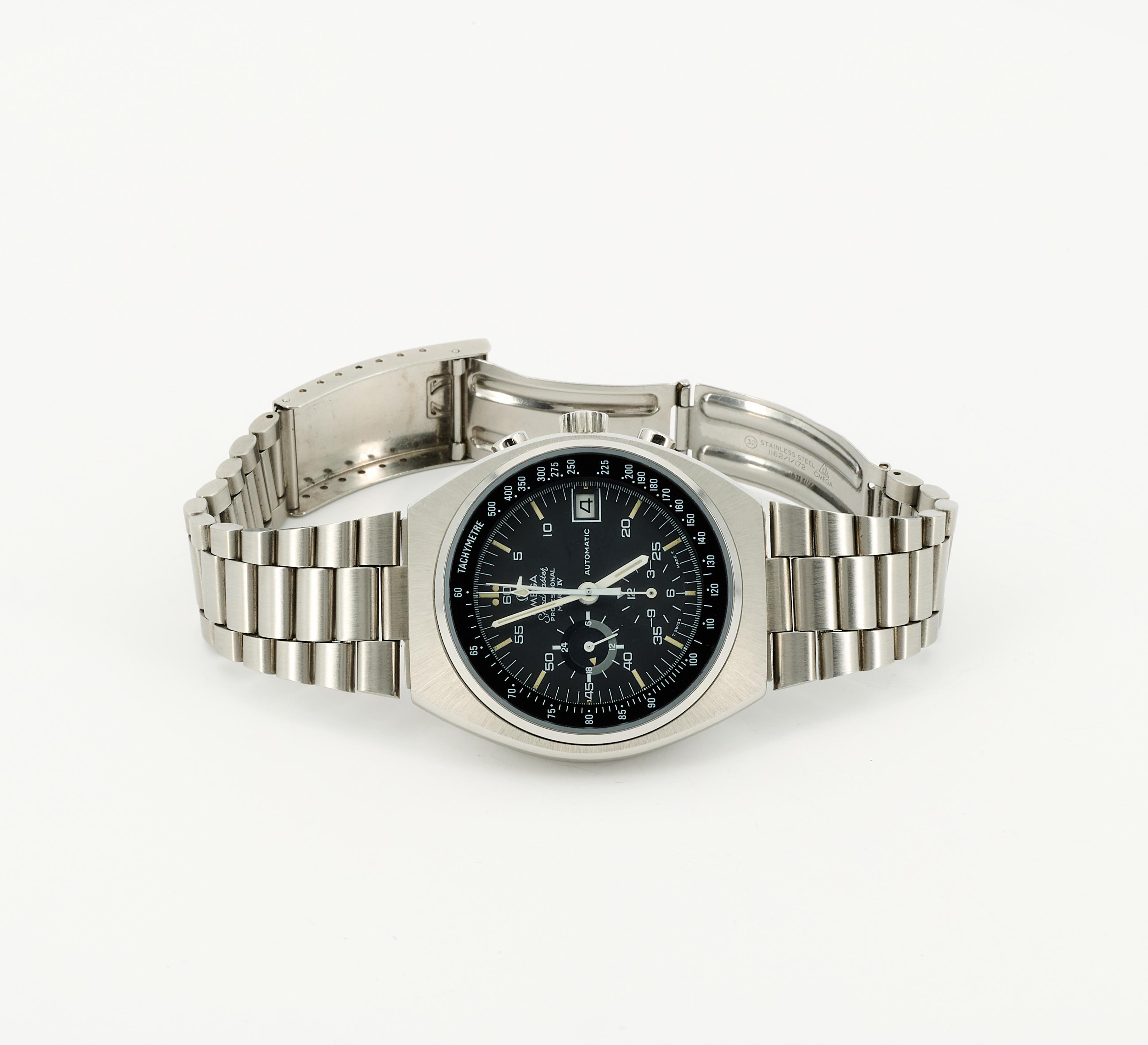 Gehäuse/Armband: Stahl, Gliederarmband mit Faltschließe, Zffbl. schwarz, Zeiger und Indizes weiß, Leuchtmasse.