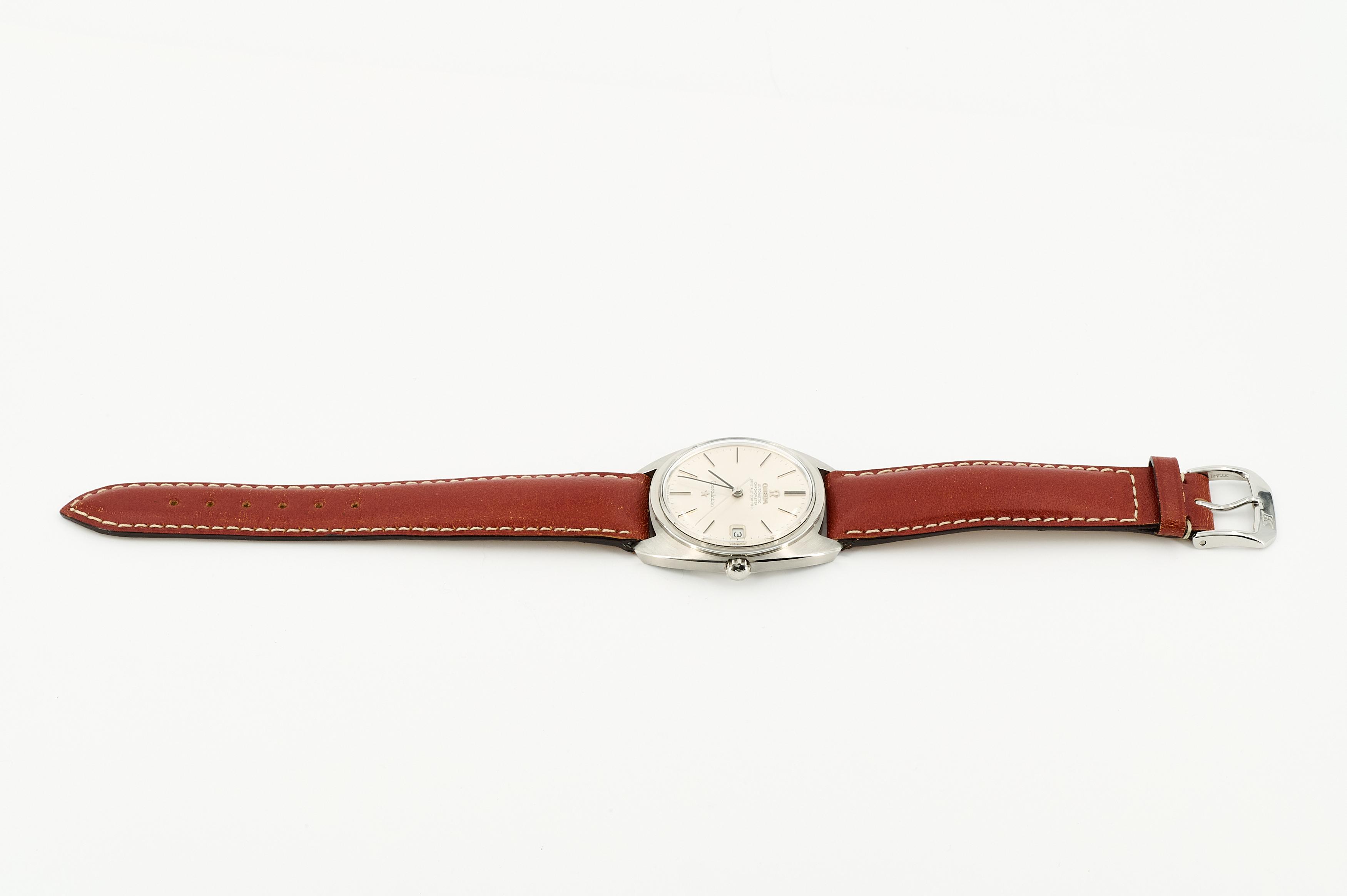Beschreibung: 3-Zeiger-Armbanduhr mit Datumsanzeige bei "3" Uhr.