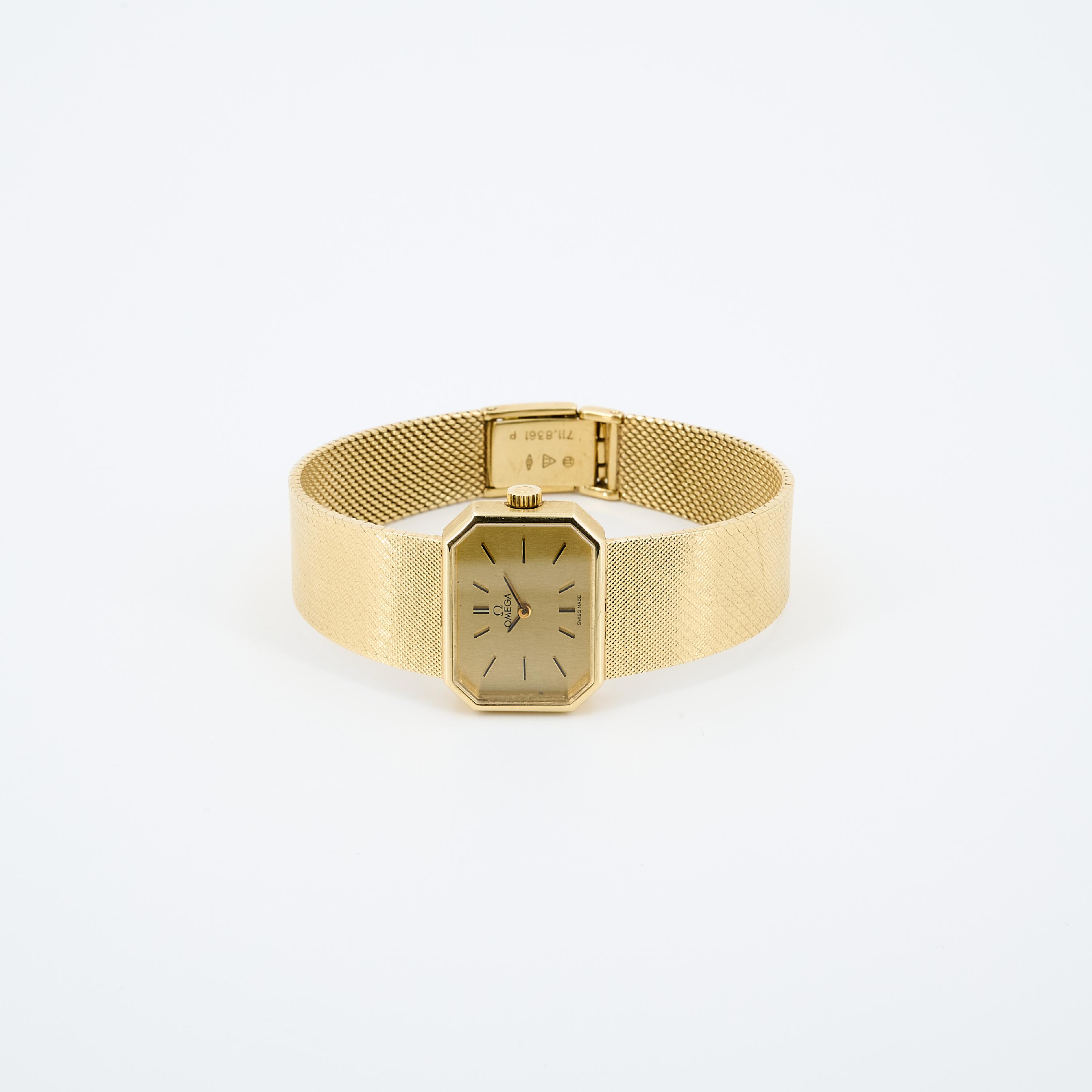 Gehäuse/Armband: 750/- Gelbgold, Milanaiseband mit Kastenschließe, Zffbl. golden, Zeiger und Indizes schwarz.
