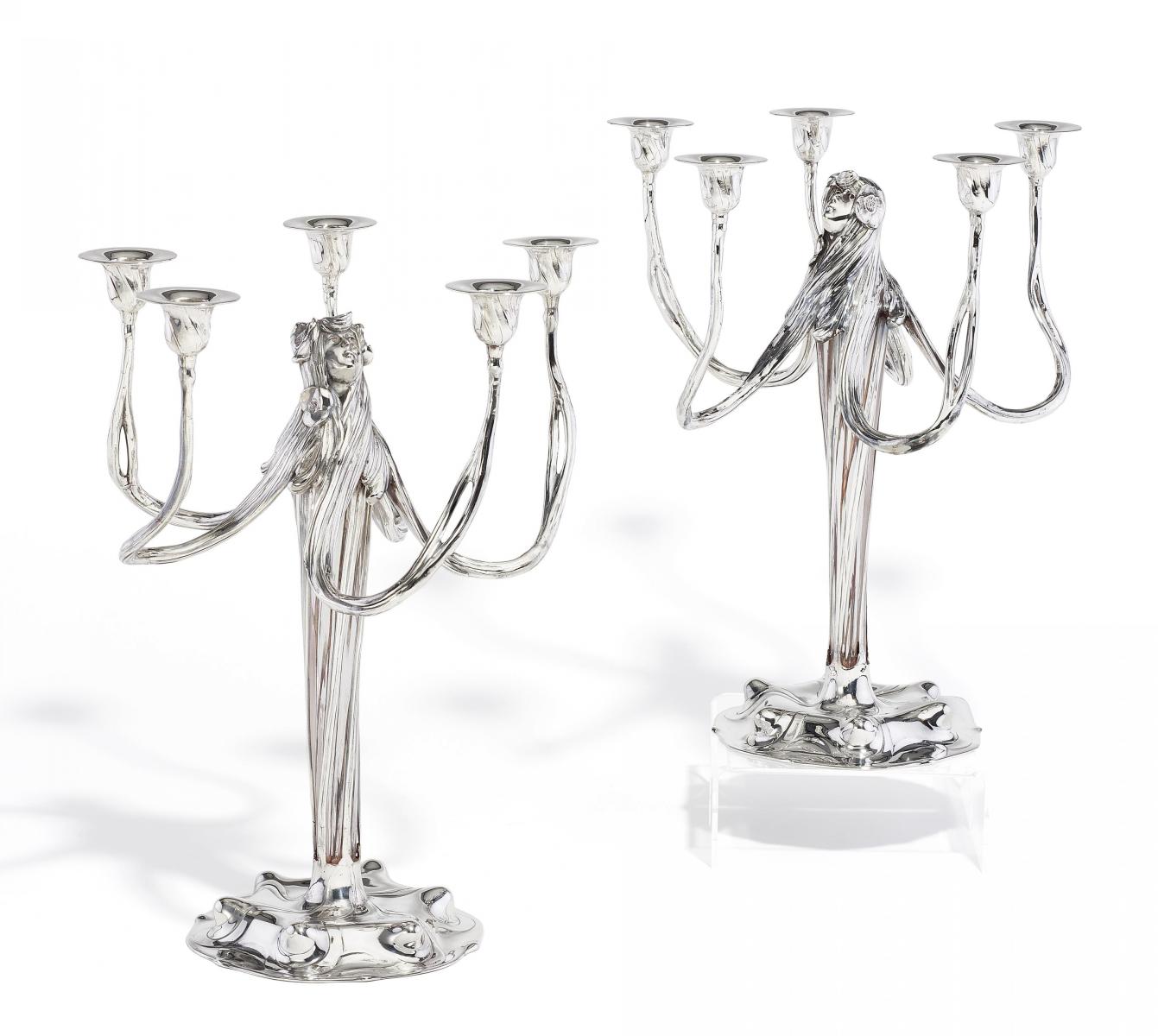 PAAR PRUNKVOLLE JUGENDSTIL GIRANDOLEN.