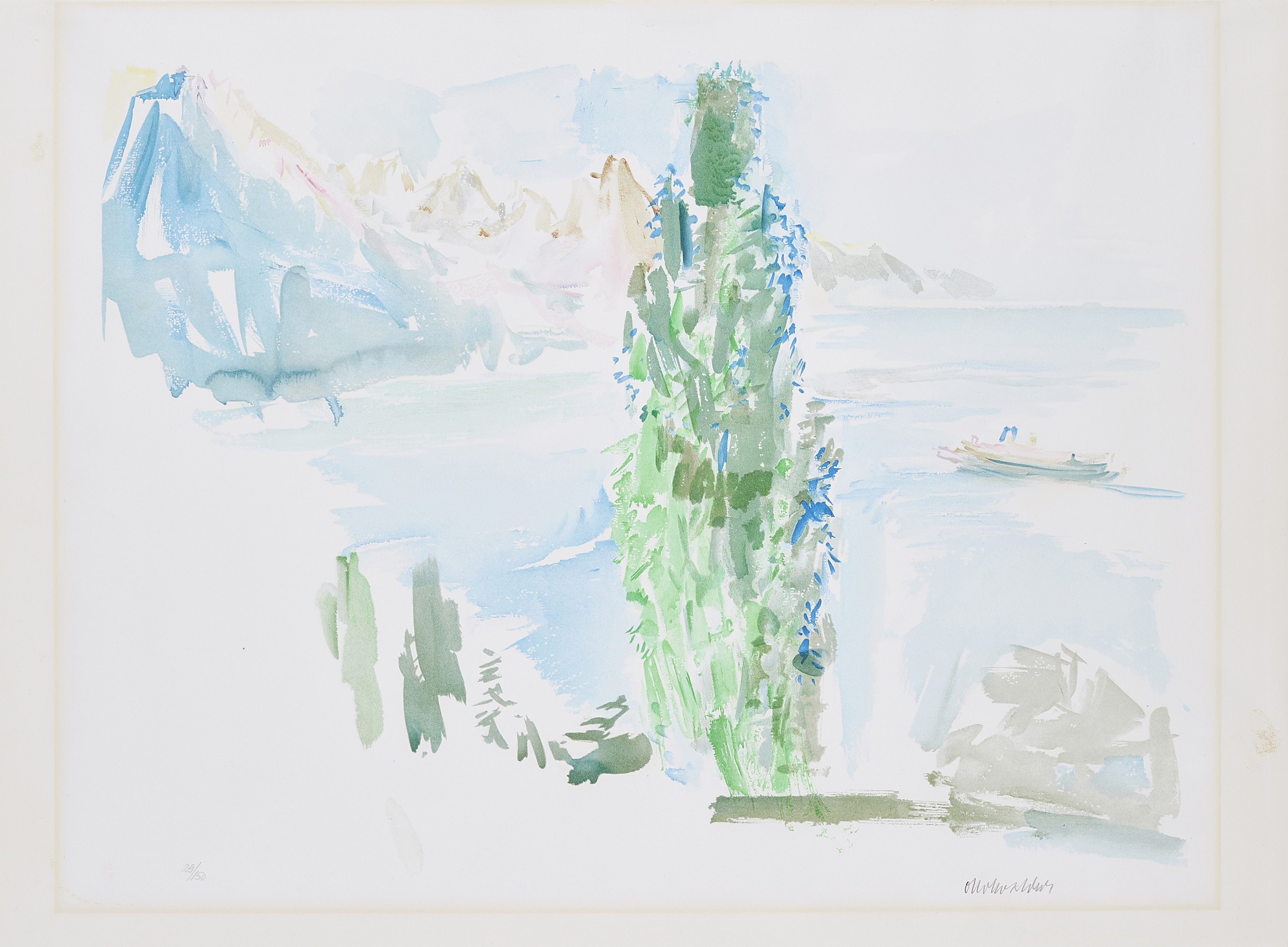 Die Farblithografie entstand nach einem Aquarell, das der Künstler vermutlich 1956 in Glion am Genfer See schuf.