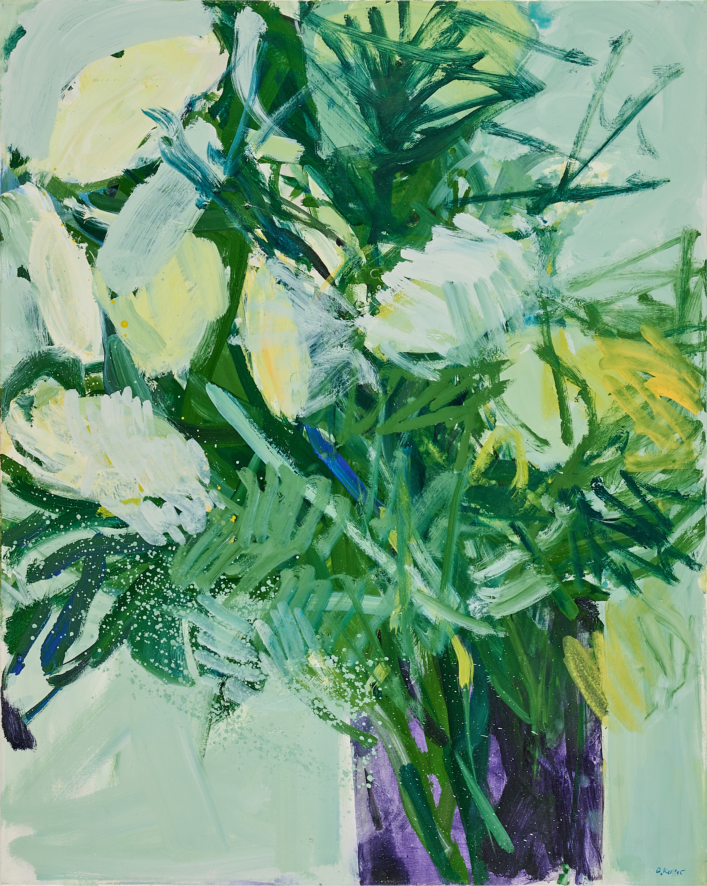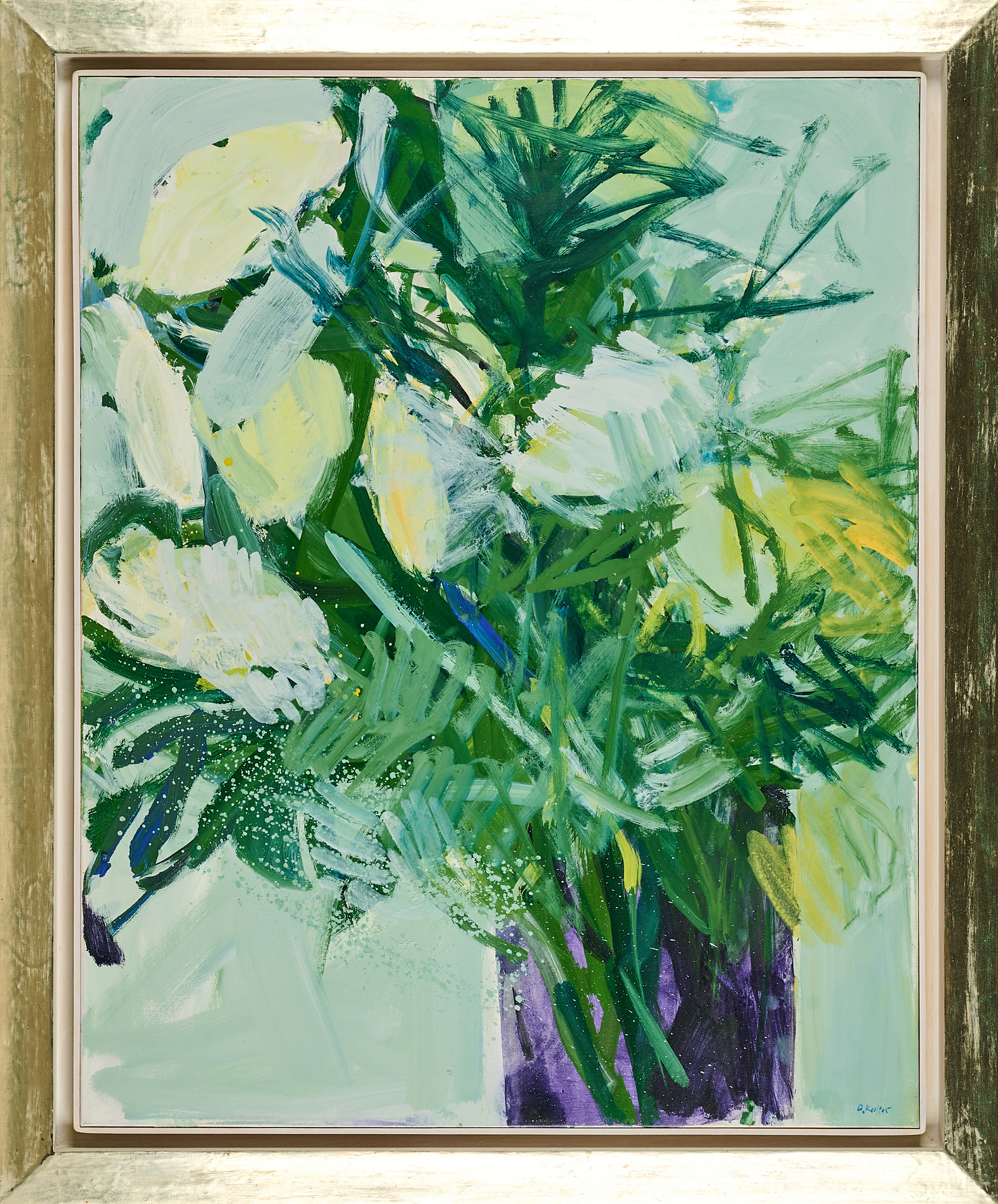 Bezeichnung: Signiert unten rechts: O. Koller. Sowie bezeichnet, betitelt, datiert und bezeichnet verso auf dem Keilrahmen: ... (schwer lesbar) Bewegter Strauß Acryl 1984 ... (unlesbar).