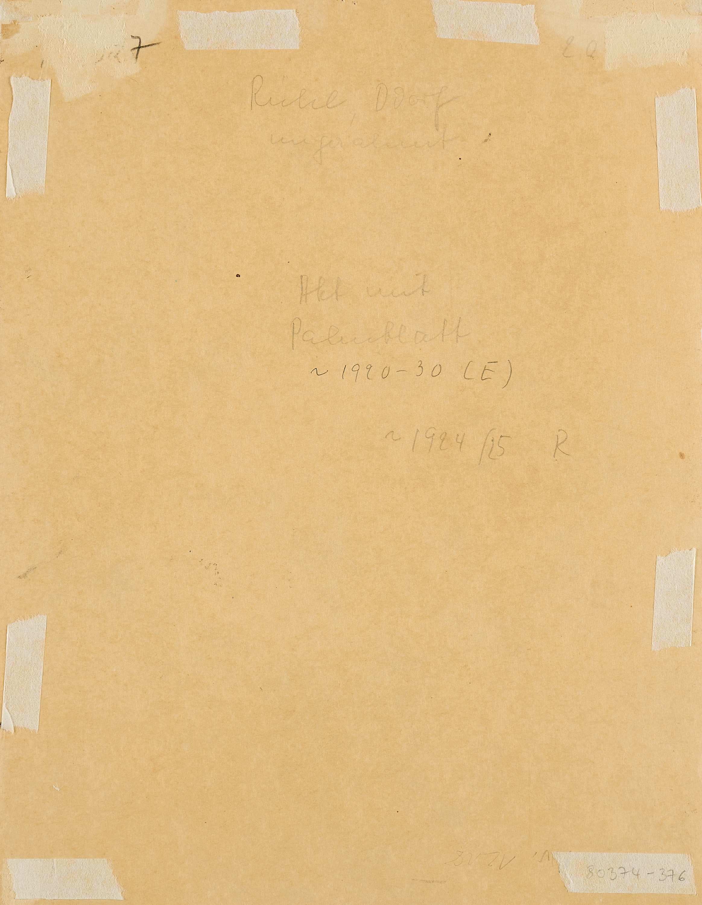 Stecknadellöcher oben mittig. Leicht gebräunt. Verso Reste alter Montierung (schlagen teilweise recto leicht durch) sowie leicht gebräunt. Ansonsten guter Zustand.