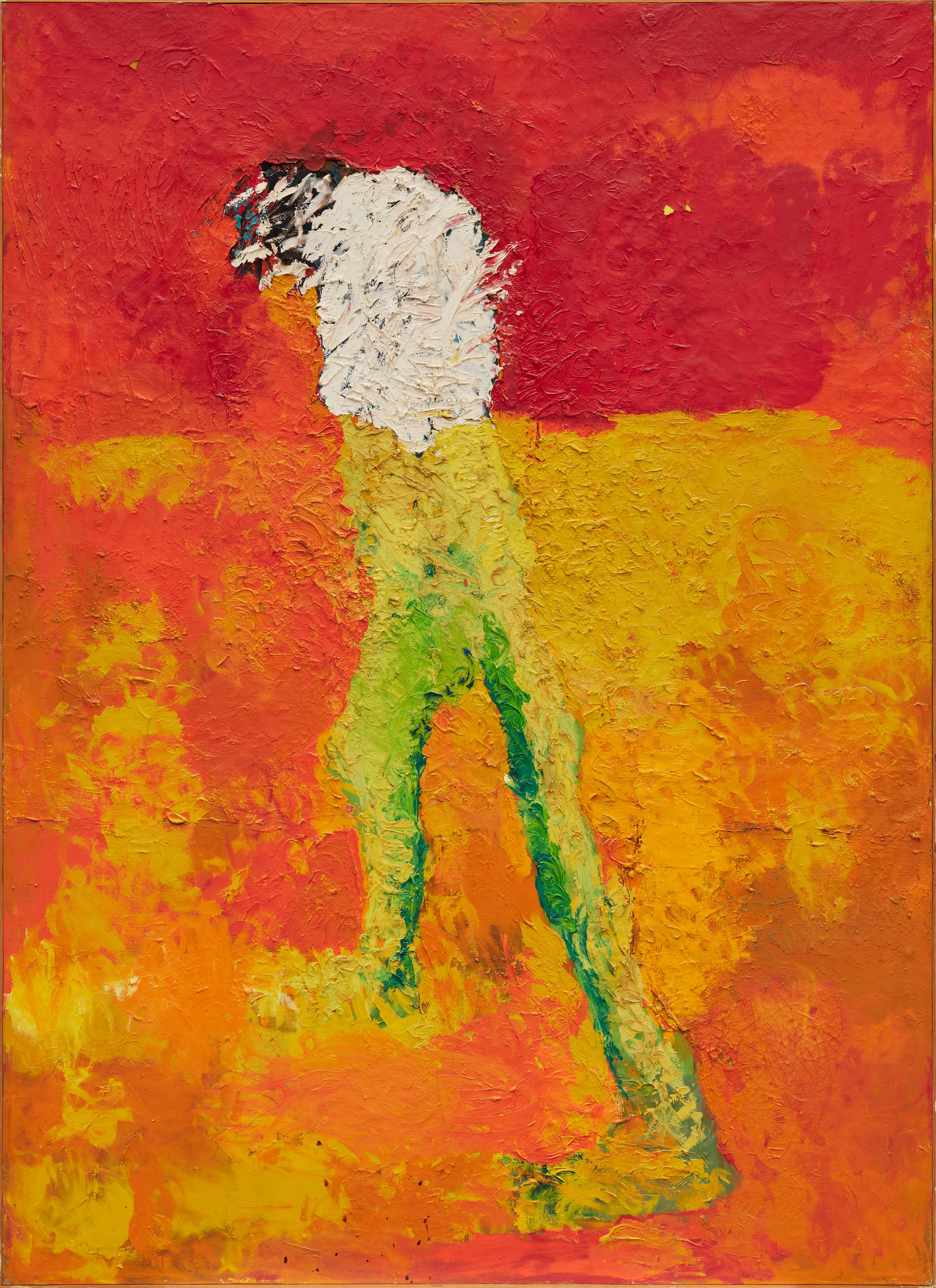 Krakelee in den pastosen Bereichen, teilweise mit hochstehenden Farbschollen und kleinen Materialausbrüchen (max. ca. 1 x 1cm). Ansonsten guter Zustand. Das Werk wurde für die Katalogbeschreibung nicht ausgerahmt.