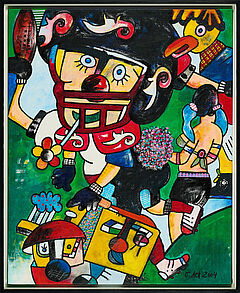 Technik: Öl und Faserstift auf Leinwand.