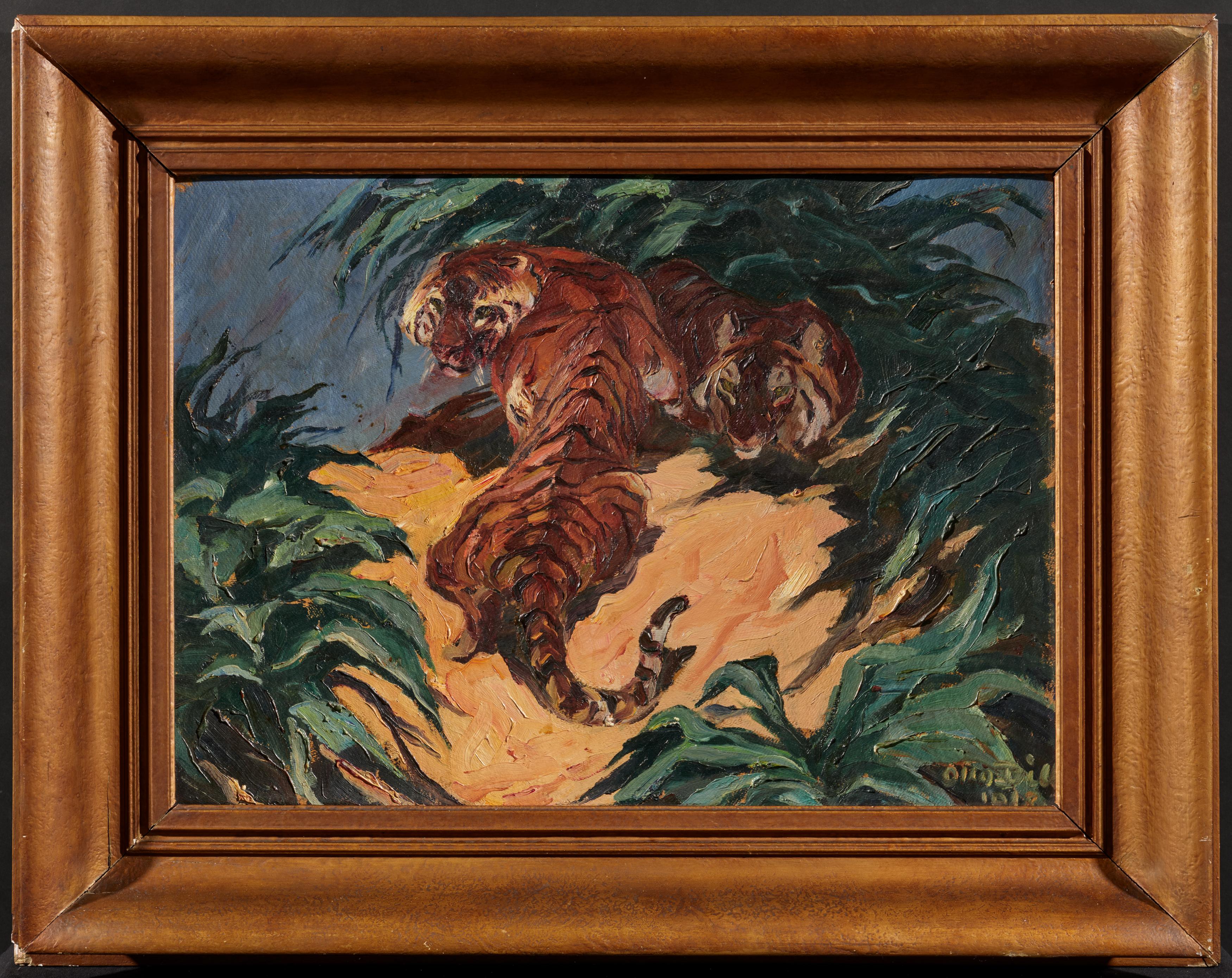 Rückseitig auf Etikett wohl vom Künstler handschriftlich signiert, datiert und betitelt: ""Tiger" 1918, Otto Dill"