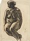 . Technik: Kohlezeichnung, laviert, auf Papier.