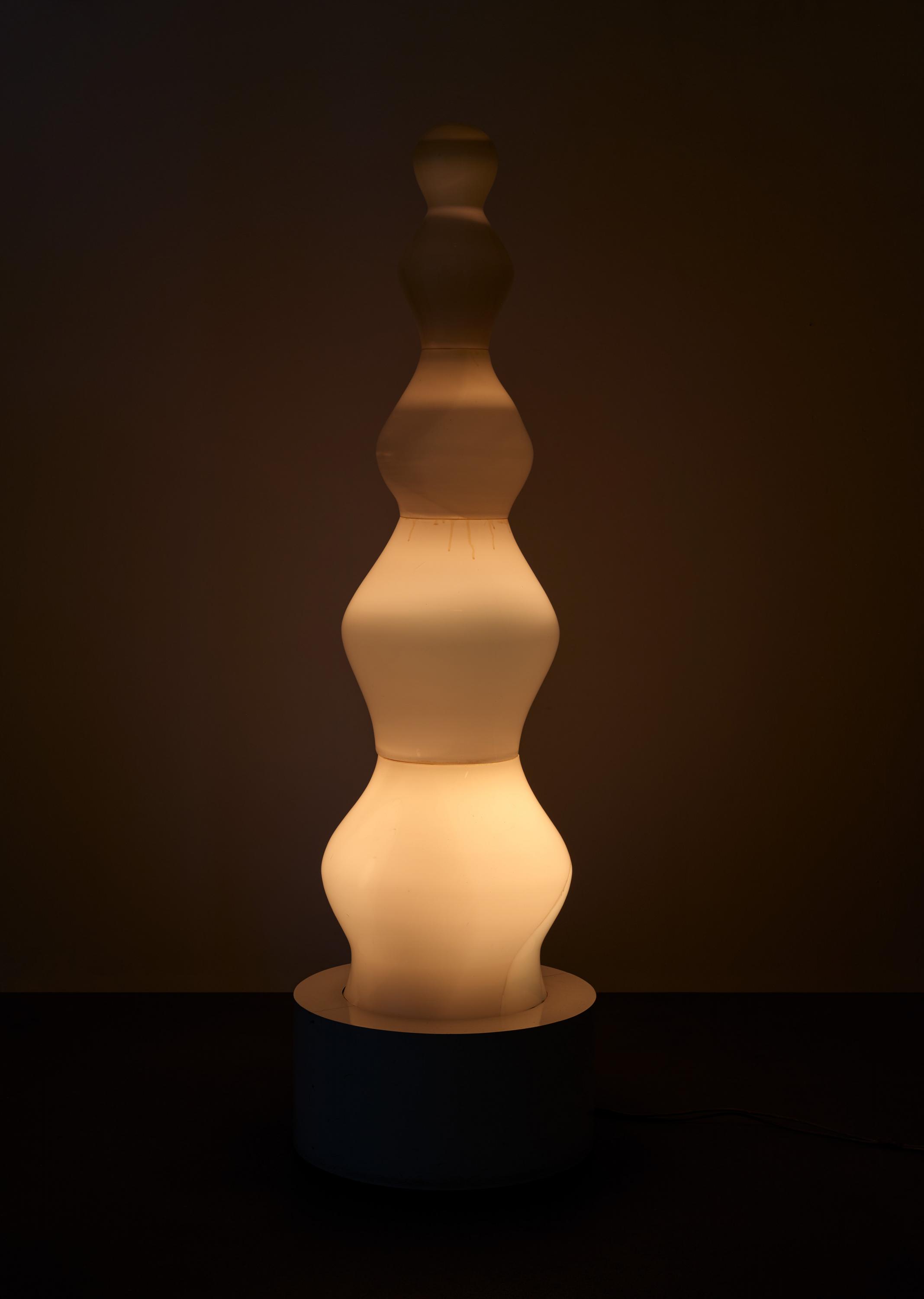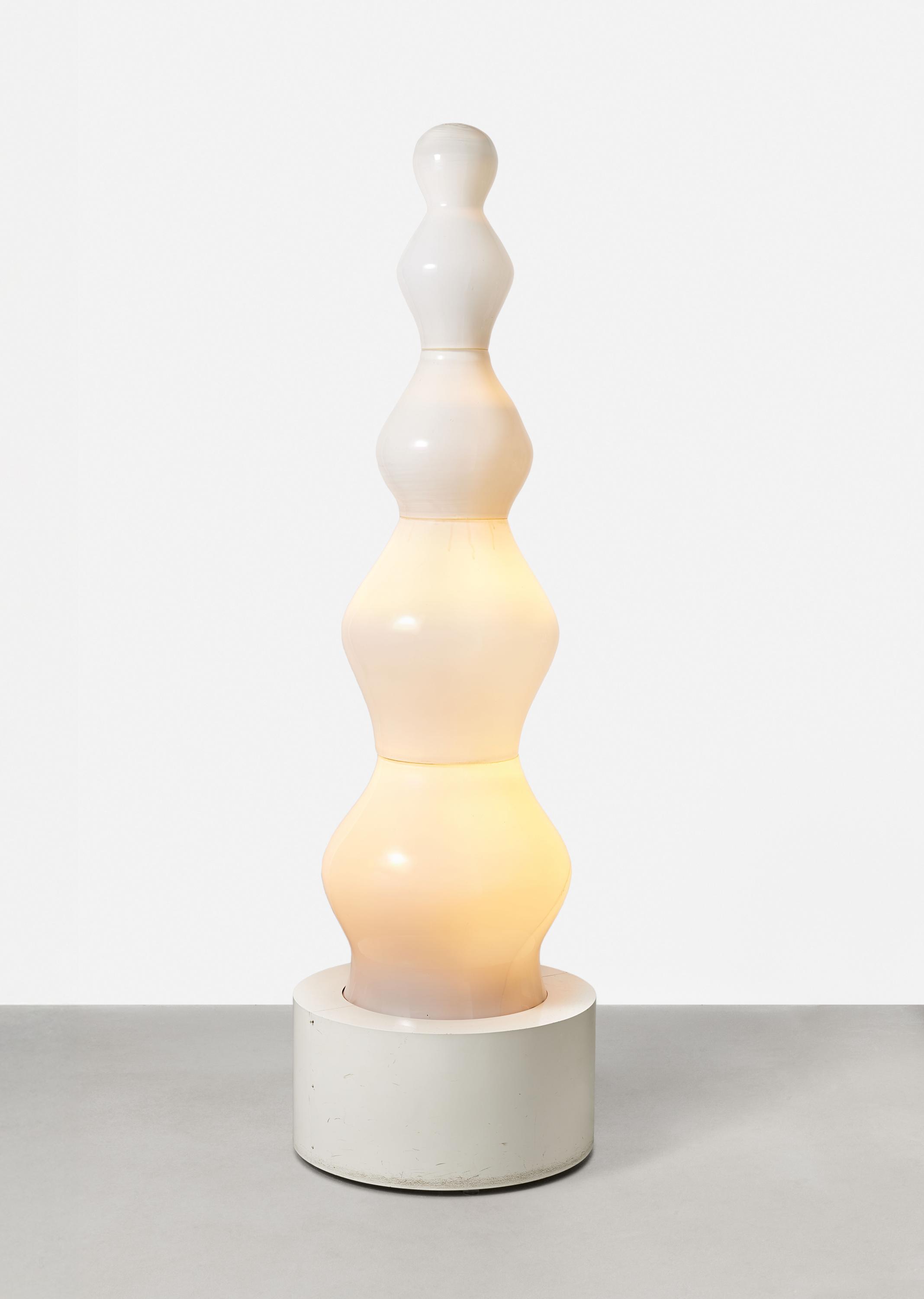 Als Studenten hatten wir die meisten Stile und Bewegungen der modernen Kunst ,durchschwommen'. [...] wir waren gegen fast alles um uns - wie Dada nach dem ersten Weltkrieg - aber für was waren wir? Die Arbeit selbst gab uns die Antwort. Wir erkannten, daß sie sich aus unserer Bildung, unserem Denken, Fühlen, unserer Vorstellung ergeben konnte, ohne vorgegebene Theorie. Ganz einfach: wir arbeiteten, wurden gefragt, antworteten - und das Ergebnis war Zero. [...] Meine Erfahrungen im Entwurf von Lampen und Beleuchtung, Macks Arbeit mit Mosaik und unsere gemeinsamen Projekte ,serieller' Grafik führten zum Sehen übergeordneter Phänomene: Licht und Vibration. Die Sensibilität dieser ,Medien' verlangte neue Reinheit, Nüchternheit, Kontrolle, Disziplin und Nuance der Empfindung und Wachheit." (Otto Piene "Position Zero" (1965/92) zit. nach Ausst.-Kat. Zero - Eine Europäische Avantgarde, Galerie Neher, Essen/Galerie Heseler, München/Mittelrhein-Museum Koblenz, 1992/93, S. 7/8.Ein spannender WerdegangOtto Piene - Mitbegründer der berühmten ZERO-Bewegung - gilt als Schlüsselfigur der internationalen Nachkriegsavantgarde und bedeutender Vertreter einer visionären Lichtkunst. Nach einem Studium an der Blocherer Schule für Innenarchitektur und Kommunikationsdesign wendet er sich der Bildenden Kunst zu und setzt seine Ausbildung an den Akademien in München und Düsseldorf sowie im Fach Philosophie in Köln fort. Schon früh experimentiert er mit Licht, Feuer und Bewegung - er schafft lichtkinetische Arbeiten, poetische Lichtballette, die den umgebenden Raum illuminieren, Rauch- und Feuerbilder sowie monumentale "Sky Events", in denen er den Himmel als künstlerischen Raum erschließt. Legendär wird seine Projektion eines riesigen Regenbogens anlässlich der Abschlussfeier der Olympischen Spiele 1972 in München. Seit 1964 in den USA, lehrt der Künstler ab 1968 am Center for Advanced Visual Studies am Massachusetts Institute of Technology (MIT) in Cambridge, dessen Direktor er von 1974 bis 1994 ist. 2014 wird Piene der erste Deutsche Lichtkunstpreis verliehen.Licht als immaterieller Werkstoff und Ausdruck eines künstlerischen NeubeginnsOtto Pienes "Lichtgeist" von 1969 ist ein Beitrag zur Entwicklung einer innovativen und wegweisenden Kunst, in der das Licht eine zentrale Rolle spielt. Die vertikal aufragende Plastik besteht aus einer Abfolge weich modellierter, bauchiger Formen, die sich rhythmisch nach oben hin verjüngen. Diese Staffelung erzeugt eine bewegte Silhouette, die einerseits einer architektonischen Ordnung folgt, andererseits an organische Wachstumsprozesse erinnert.Eine im Inneren verborgene Lichtquelle lässt ein warmes, gedämpftes Leuchten durch die transluzente Oberfläche der sanft geschwungenen Formen dringen. Diese modelliert die Volumen, schafft fließende Übergänge zwischen Helligkeit und Schatten und verleiht der Skulptur eine geradezu atmende Präsenz. Auf diese Weise gelingt es Otto Piene, das Licht nicht als bloßes Mittel der Beleuchtung, sondern als integralen Werkstoff seiner Arbeit erfahrbar zu machen. Der Künstler begreift das Licht als lebendige Kraft, als Verwandlung von Energie in Form - das Unsichtbare wird sichtbar, das Nichtstoffliche erfahrbar.Pienes "Lichtgeist" verkörpert die Idee einer Lichtkunst, die über das rein Materielle hinausweist und eine sinnlich-räumliche, immaterielle Erfahrung eröffnet. Das Werk ist ein maßgeblicher Beitrag zum Aufbruch und radikalen Neubeginn der Ära nach 1945, in der Piene als einer ihrer bedeutendsten Pioniere hervortritt.Doris Hansmann