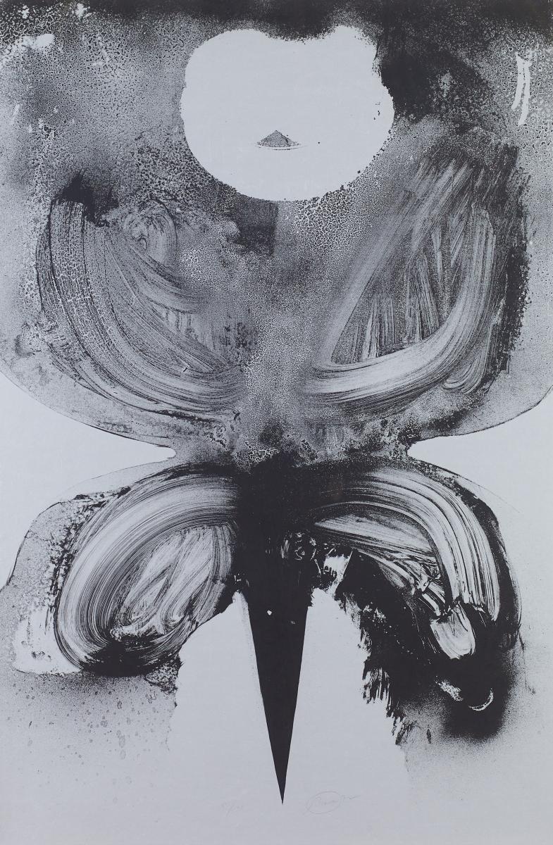 . Farbserigrafie auf Chromokarton. 139 x 96cm (146 x 96cm). Signiert, datiert und nummeriert. Edition Merian, Krefeld (Hrsg.). Ex. 22/90. Rahmen. - Untere Ecke leicht bestoßen und Kanten zum Teil minimal bestoßen. Leichte Oberflächenbereibungen. Vereinzelte leichte Kratzspuren im oberen Druckbereich. Verso montiert. Im Rahmen beschrieben.