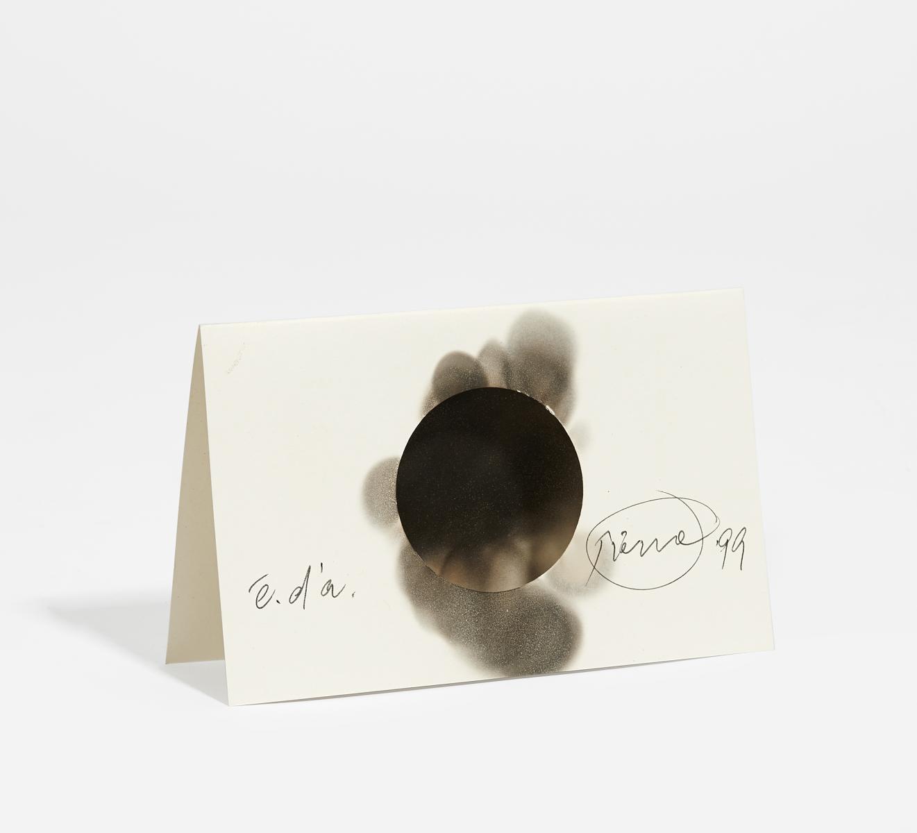Oculus. 1999. Rauchzeichnung auf Karton (Klappkarte). 10 x 16cm Signiert, datiert und bezeichnet. Texte zur Kunst, Berlin (Hrsg.). Ex. é.d'a. - Minimale Verschmutzung im oberen Eckbereich.