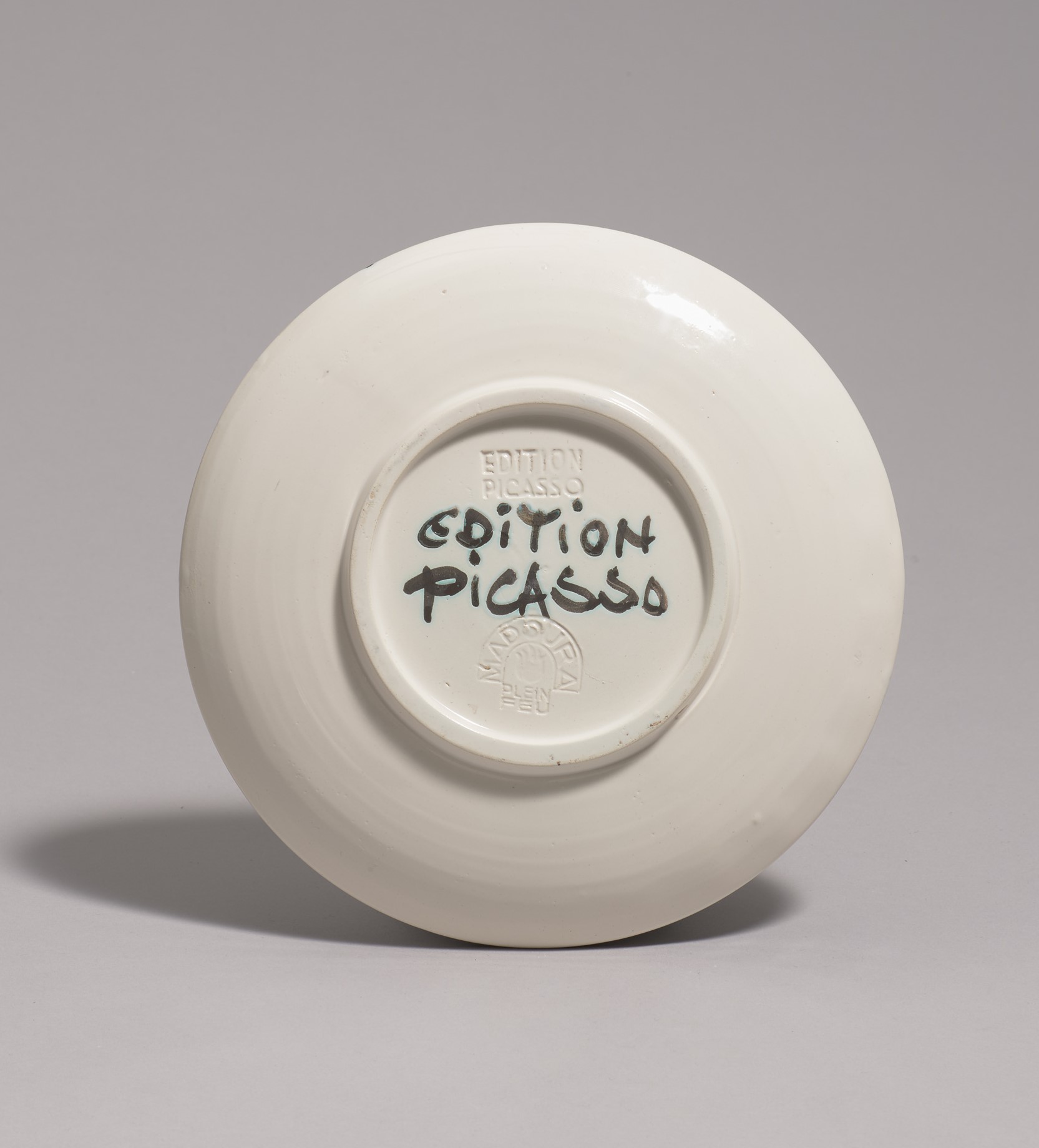 Bezeichnung: Bezeichnet (eingeritzt) auf der Unterseite: EDiTiON PiCASSO. Hier zudem mit Stempeln versehen: EDITION PICASSO und MADOURA PLEIN FEU.