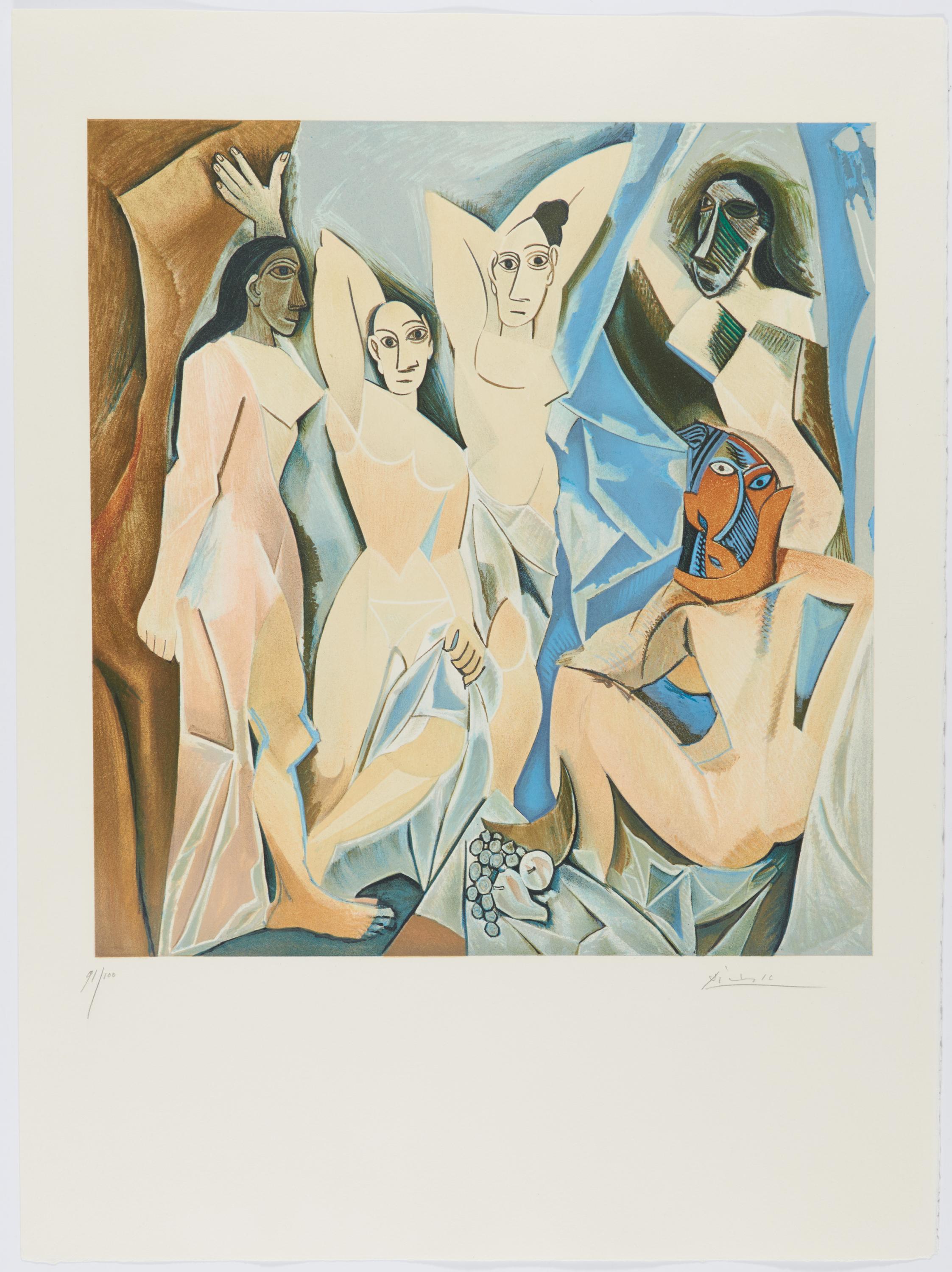 Bezeichnung: Signiert und nummeriert. Verso unten links der Stempel: PICASSO LES DEMOISELLES D'AVIGNON - 1907.