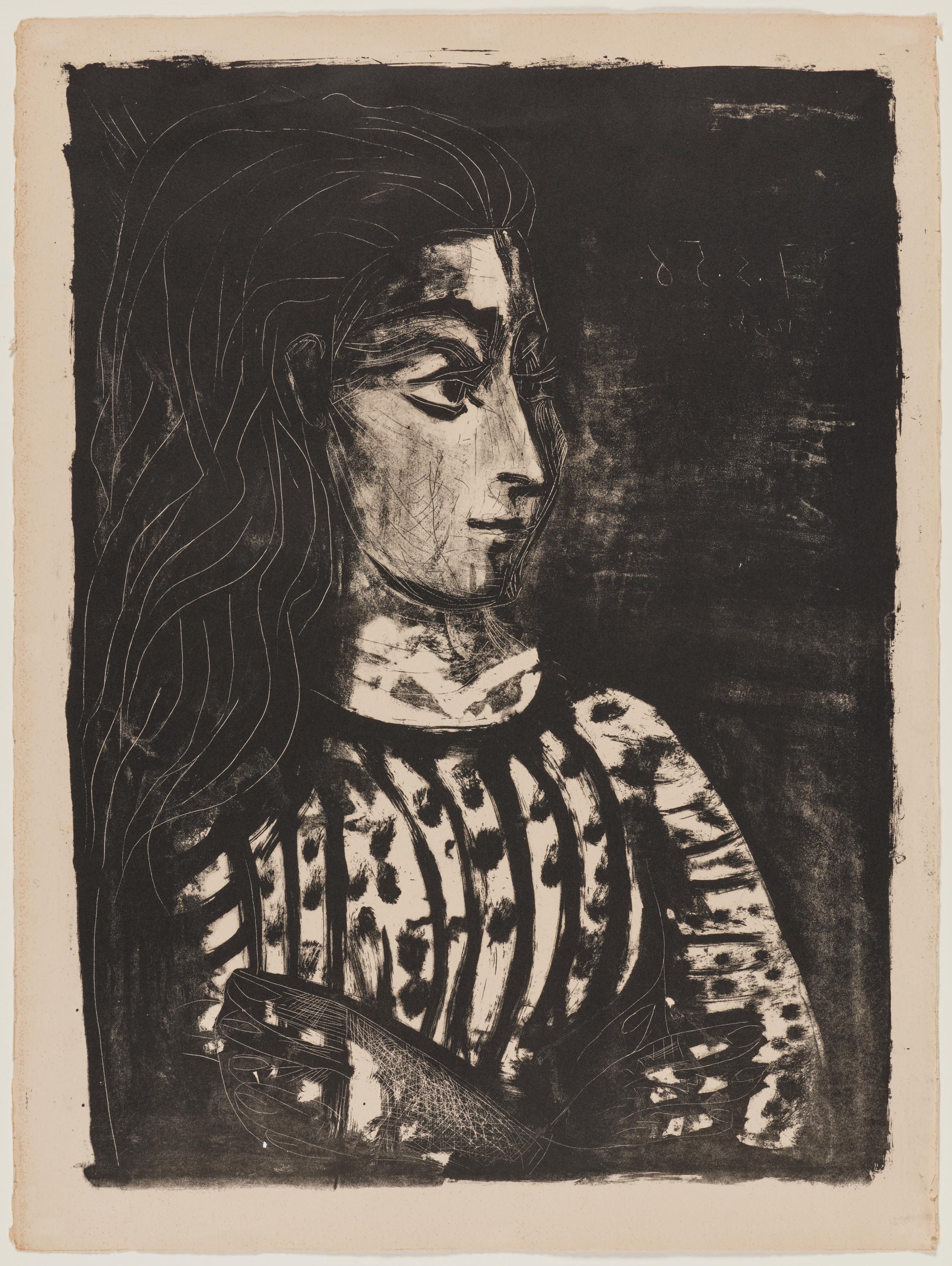 Von Dezember 1957 bis Dezember 1958 arbeitet Picasso an einer Reihe von Lithografien, die seine zweite Ehefrau Jacqueline zeigen. Die sechs Platten werden mehrfach überarbeitet, auch nachdem der Druck einer Auflage der jeweils ersten Zustände vom Künstler freigegeben worden war.