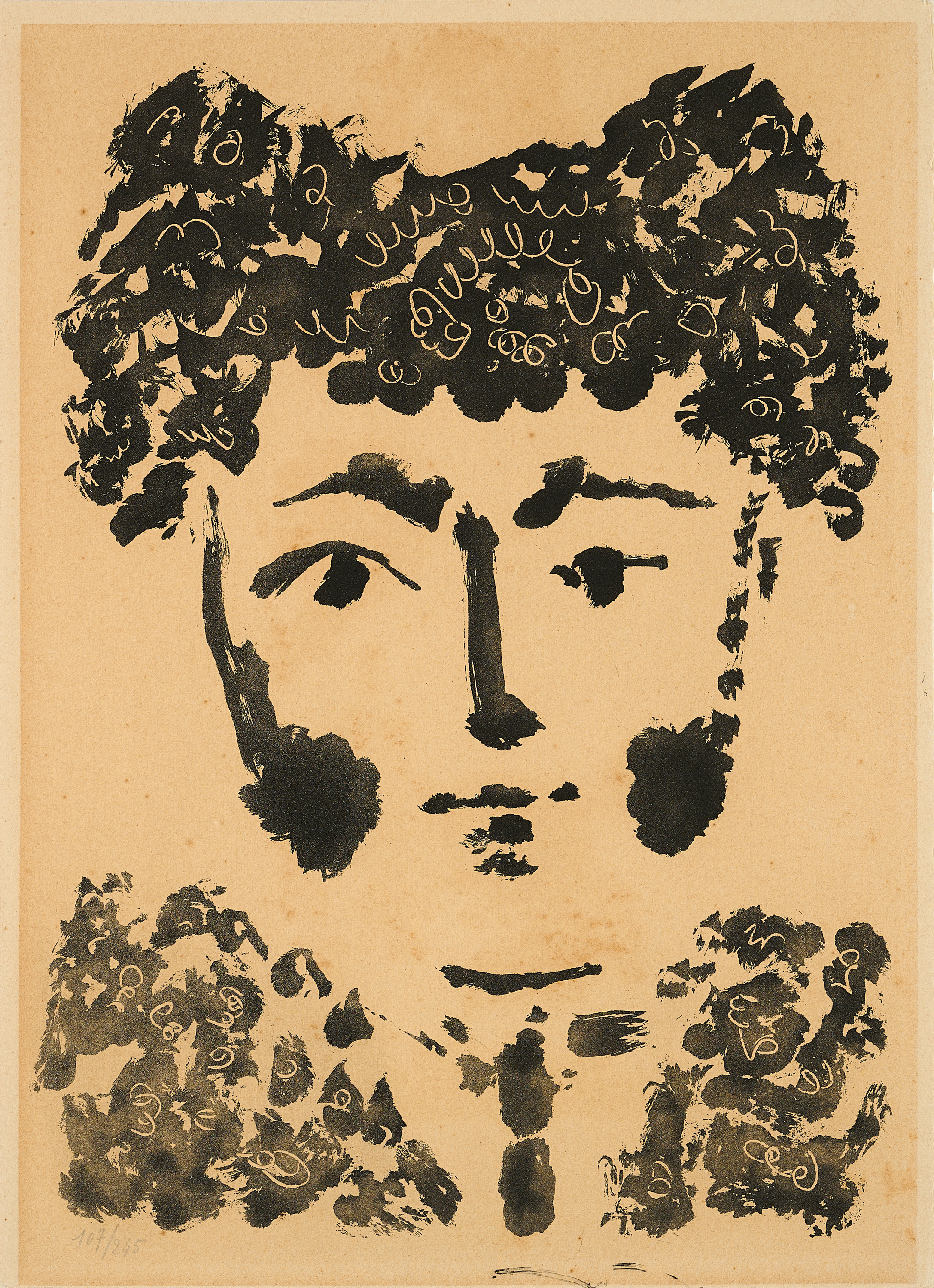 1964. a) Femme à la Mantille: Carmen. 1949. Aquatina auf Bütten. 36 x 26,5cm. Datiert in