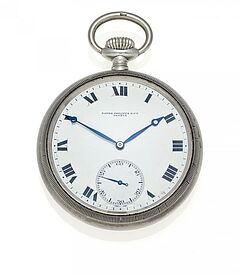 Handaufzug. Nickel, Zffbl. Email, zweiteilig, Zeiger gebleut. Gesamtgewicht: 141,5. D.ca. 5,7. Gehäuse-Nr.: 600821. Werk-Nr.: 177593.