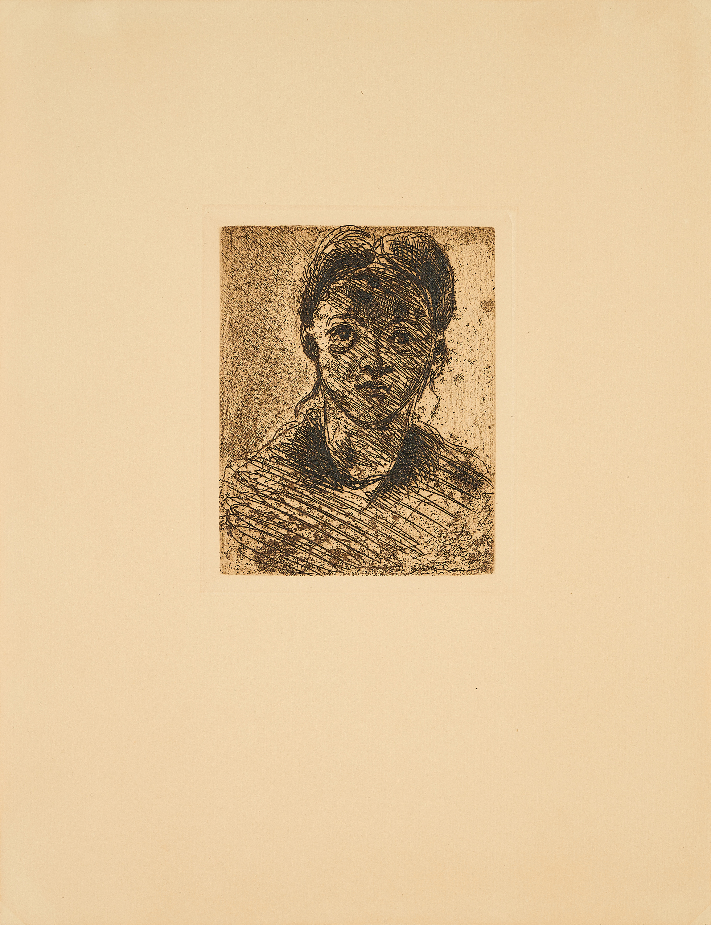 Gebräunt. Minimale Bestoßungen der Ecken. Minimale Abdrücke in den Ecken (ehemalige Montierung mit Fotoecken). Verso gebräunt sowie Reste alter Montierung. Ansonsten guter Zustand.