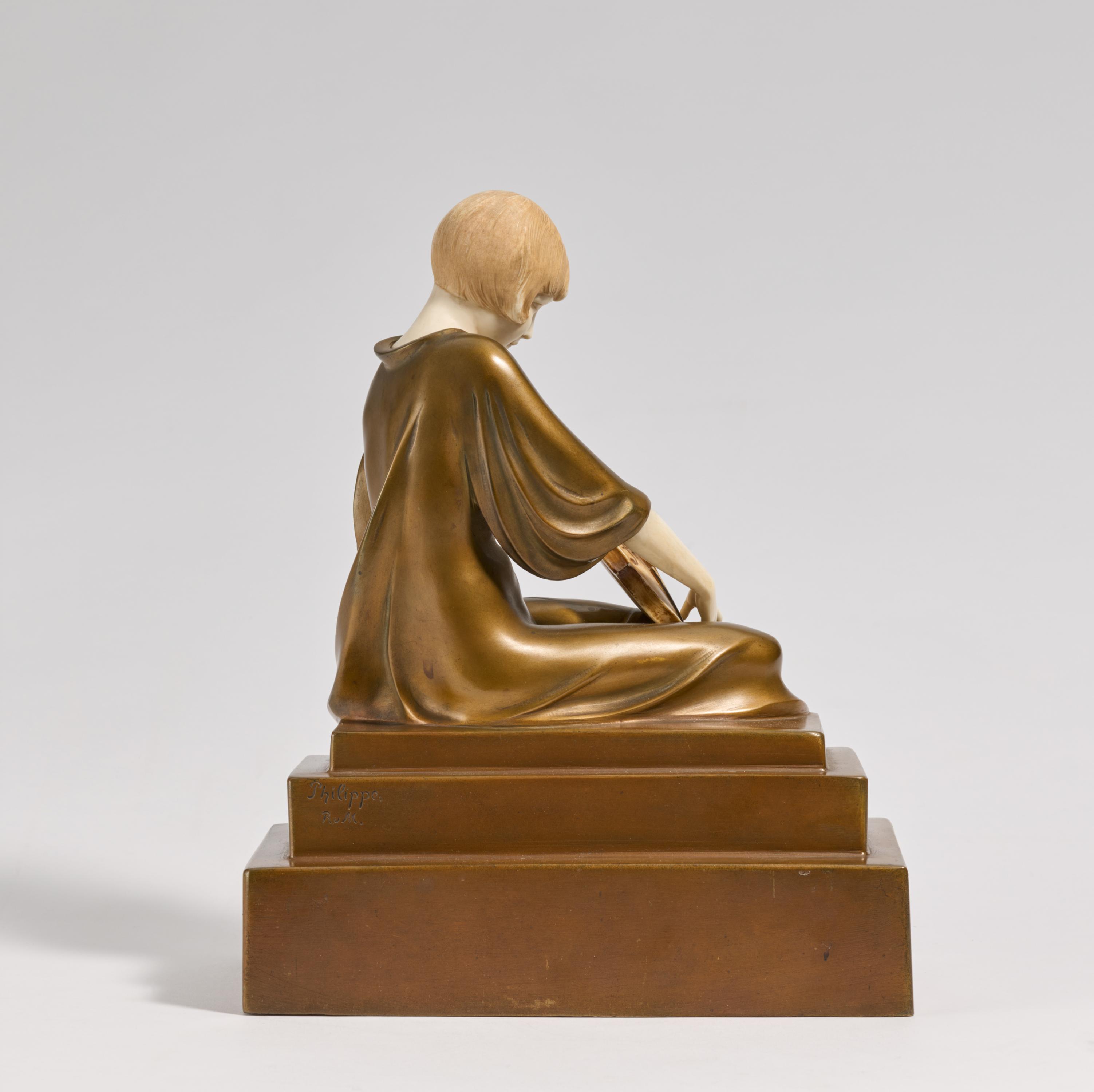 Nach seiner Ausbildung an der Akademie der Künste in Berlin zog es Paul Philippe (1870-1930) nach Paris. Dort wurde er Schüler von Antonin Larreux und präsentierte seine Werke regelmäßig in den Ausstellungen des Salons der Société des Artistes Français. Für die Fertigung seiner Werke arbeitete er mit verschiedenen Bildgießereien zusammen. So mit Les Neveux de Jules Lehmann, Goldscheider oder, wie im Fall der hier vorliegenden Figur, mit Rosenthal & Maeder in Berlin.