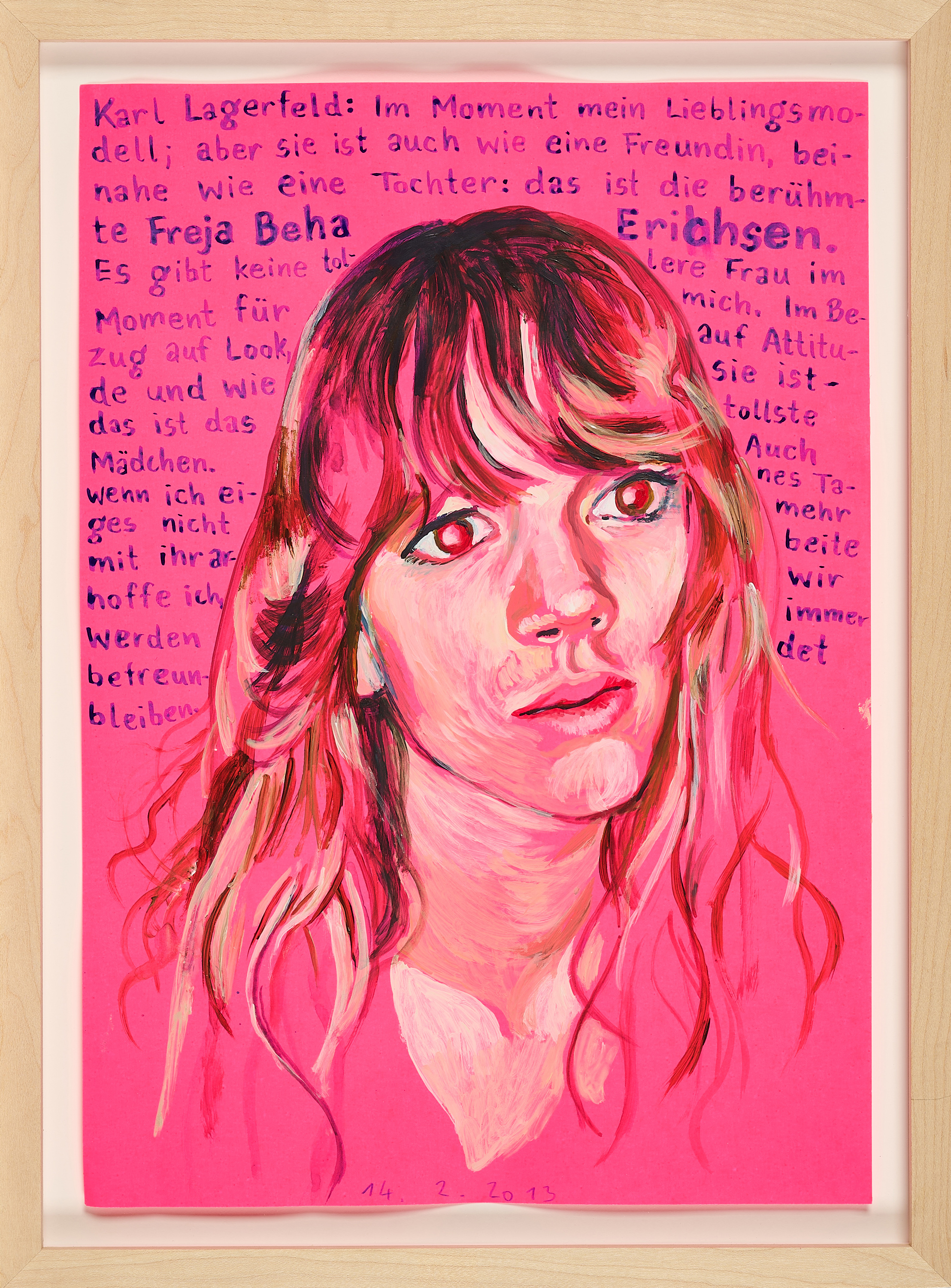 Technik: Acryl und Tusche auf pinkfarbenem Papier.