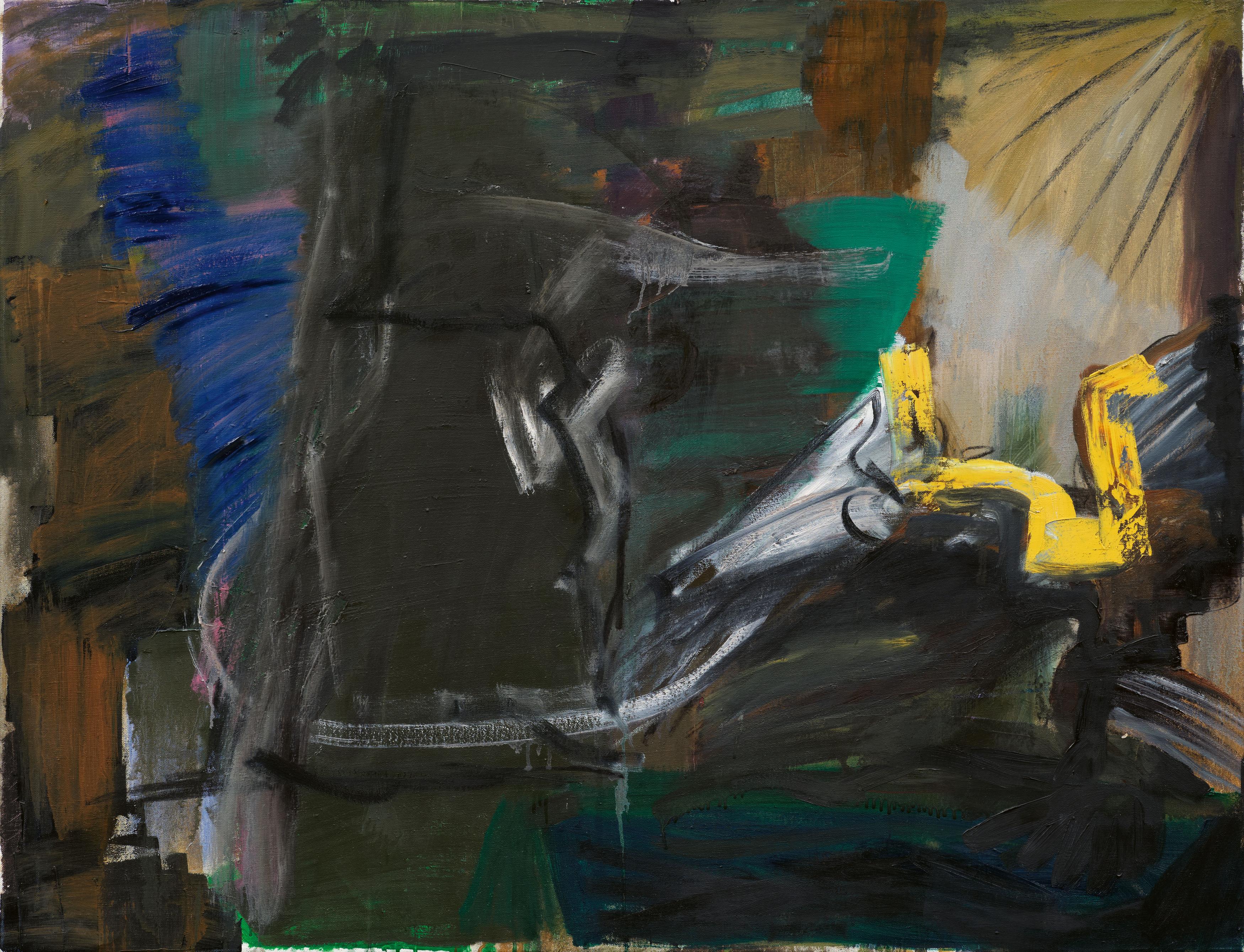 Die Arbeit "Shadow and Ornament I" kennzeichnet die Phase Kirkebys, in der er eine neue kraftvolle und rhythmische Komposition verfolgt. So erhalten intensive Farben, klare raumdefinierende Linien in den 1980er Jahren Einzug in sein Oeuvre. Farbfragmente in Dunkelblau und strahlendem Gelb dominieren die Komposition von "Shadow and Ornament I" und kontrastieren mit dem grau-grünen Hintergrund. Mit energischen schwarzen und weißen Pinselstrichen schafft Kirkeby Dynamik, verleiht den Farbflächen Struktur und Haptik und fasst sie zu einer eigens definierten Ornamentik. Jeder Anflug von Gegenständlichkeit wird negiert und ins Abstrakte verfremdet - Schatten und Ornament bleiben wohl das Einzige, das sich in dieser eindrucksvollen Arbeit Kirkebys definieren lässt.