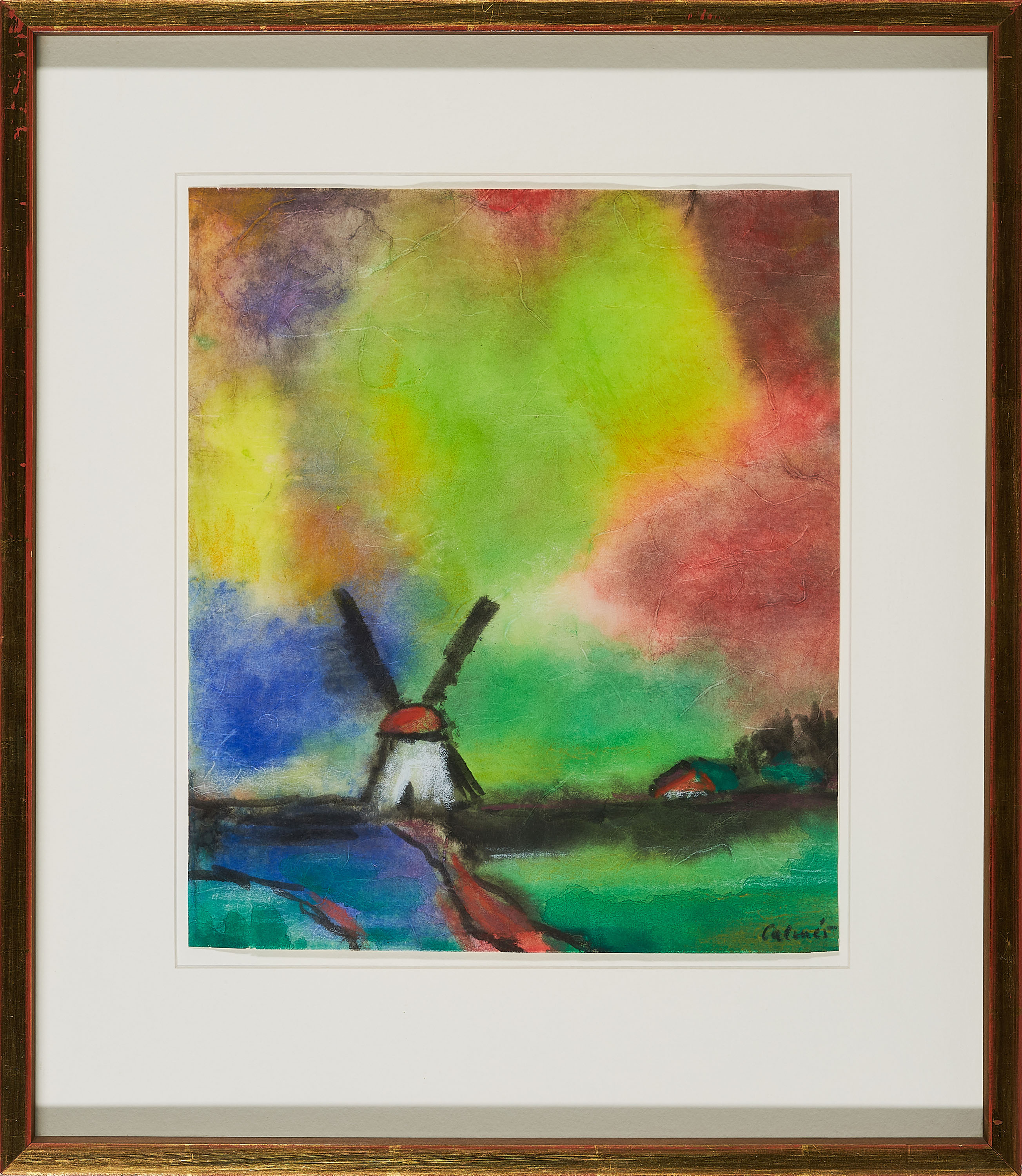 Blatt arbeitsbedingt minimal gewellt. Verso montiert. Die Arbeit befindet sich in einem sehr guten Zustand. Im Rahmen beschrieben.