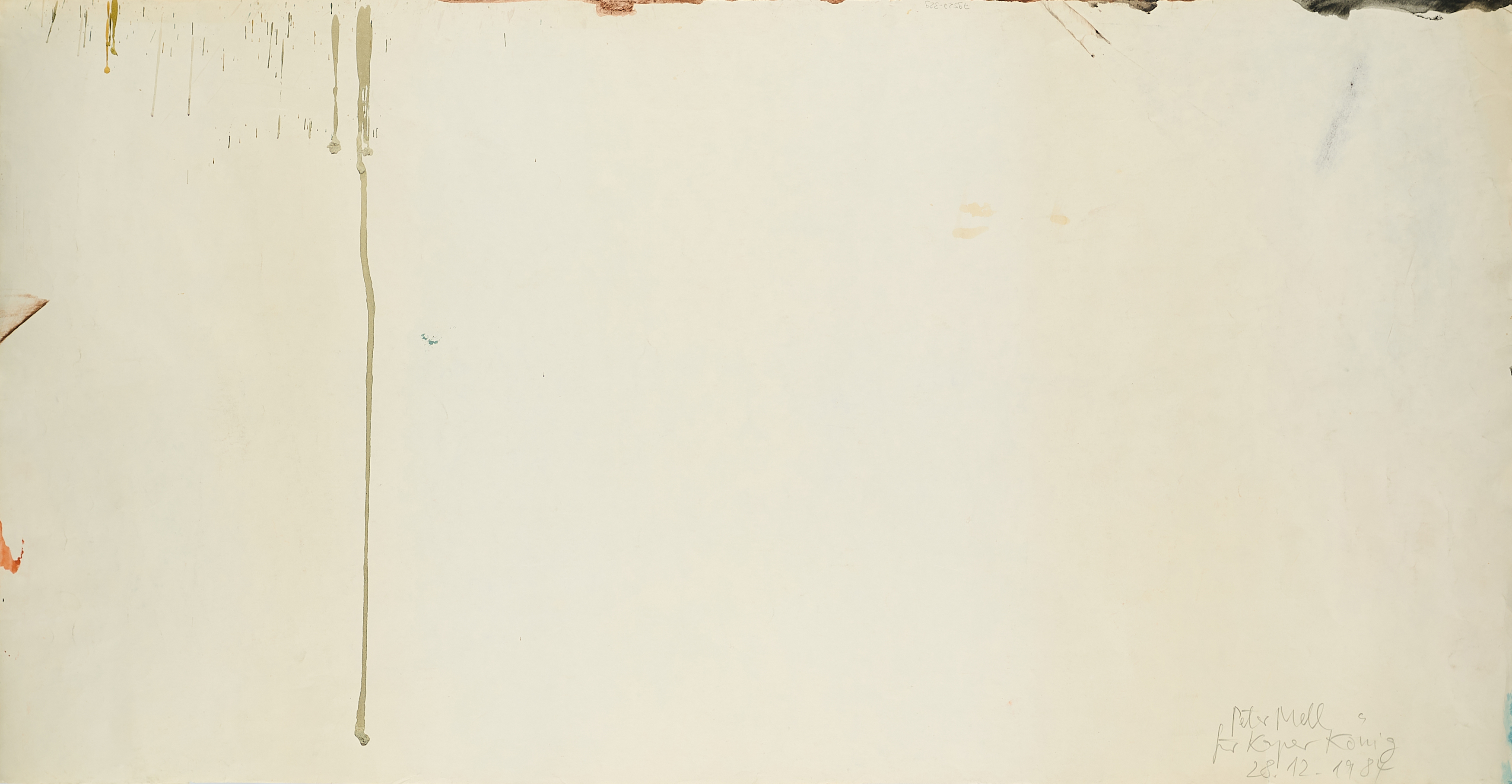 Bezeichnung: Datiert unten rechts: 2.7.1983. Signiert verso: Peter Mell. Daneben an Kasper König gewidmet.